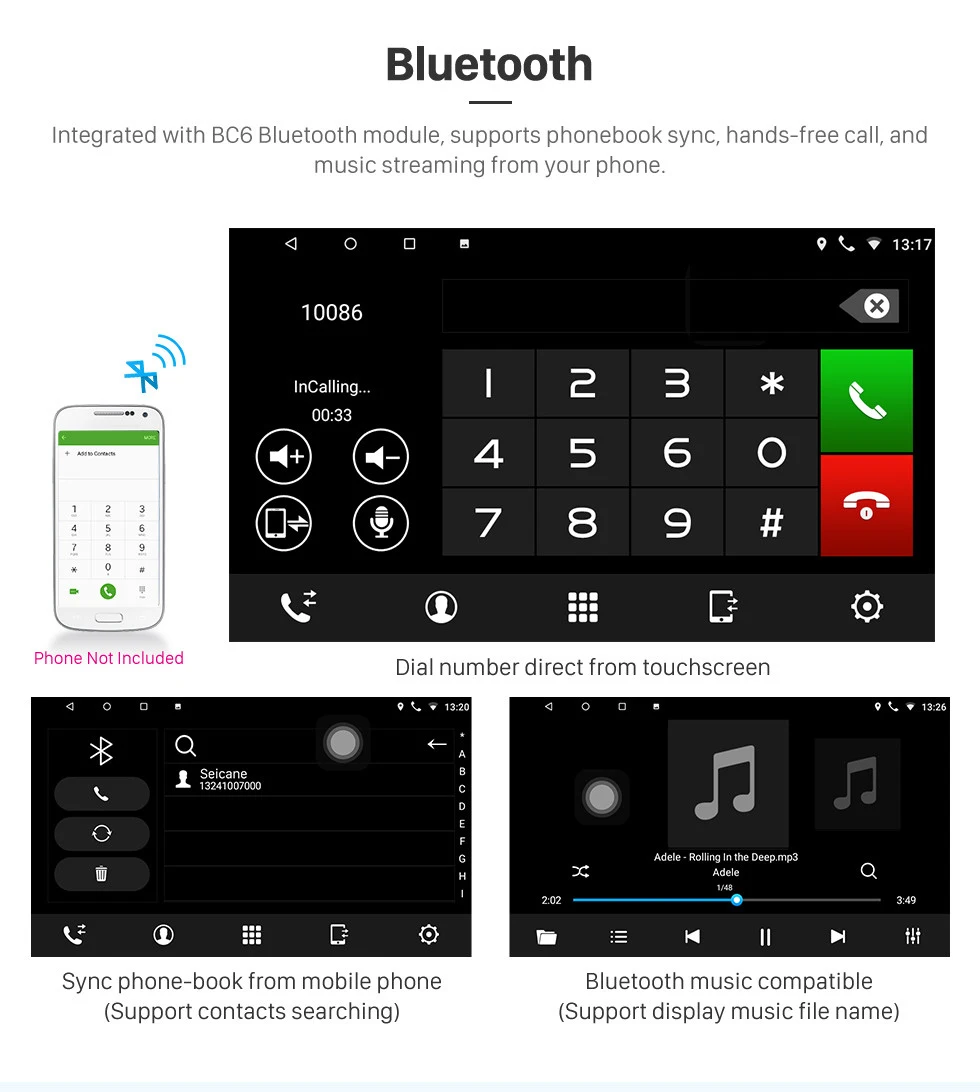 3. Функция Bluetooth: Встроенный модуль bluetooth, поддержка подключения bluetooth к телефону, гарнитура для звонков или воспроизведение музыки через bluetooth