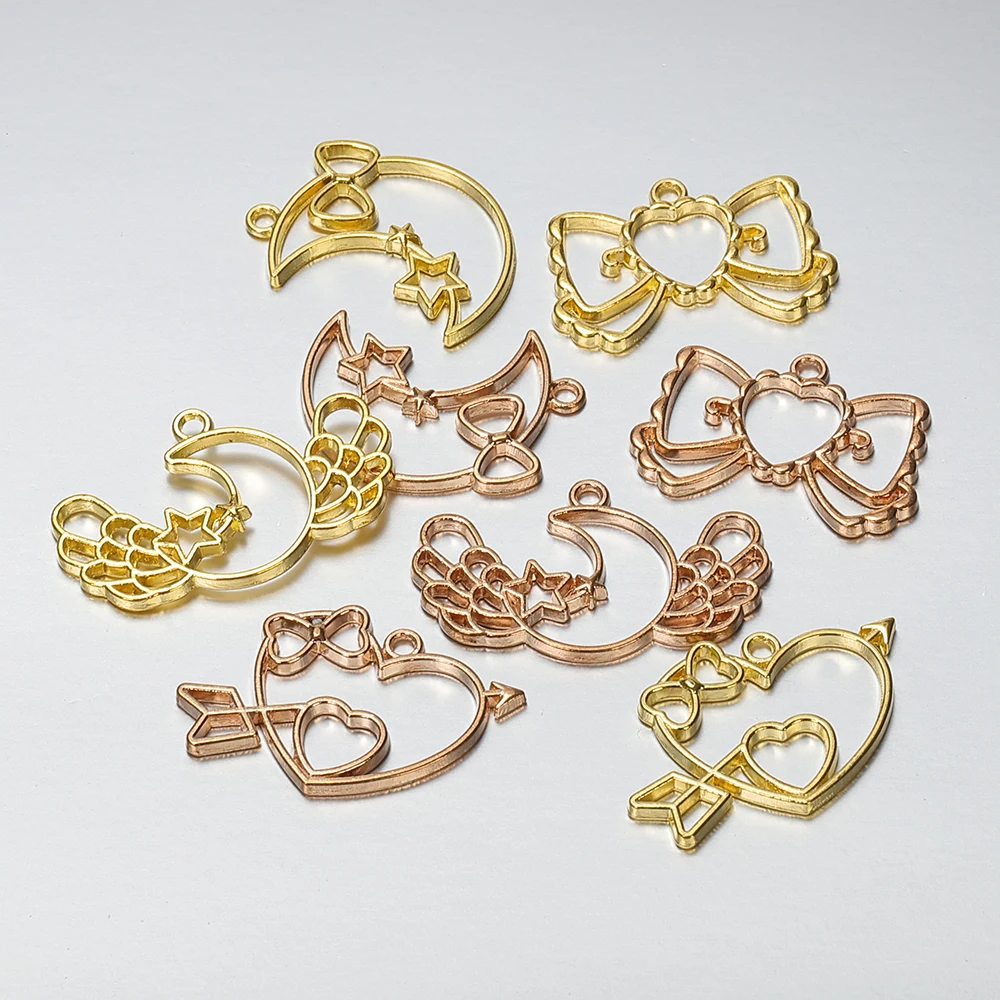 4pcs UV Epoxy Resin Mold Gold Bow Knot Heart Frame Metal Pendant Base Handmade Resin Crafts Accessories for Jewelry Making DIY