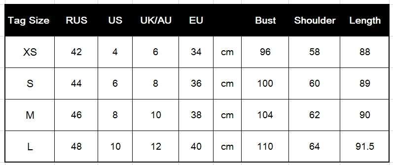 Примечание: 1. При выборе размера, пожалуйста, строго следуйте размерной сетке. Не выбирайте непосредственно в соответствии с привычкой. 2. Из-за ручного измерения размер может отличаться на 2-3 см. Пожалуйста, обратите внимание, когда вы измеряете.