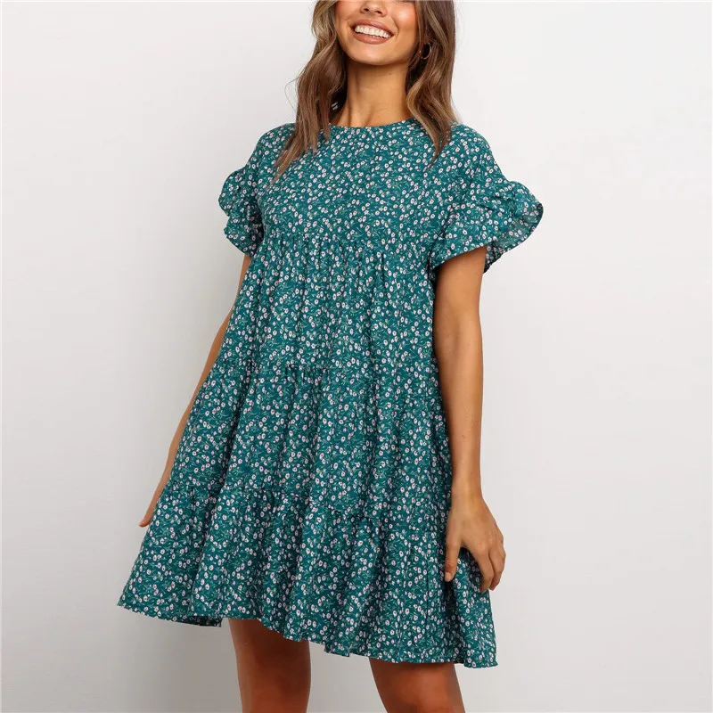 Женское платье-туника средней длины в горошек, повседневное свободное пляжное платье в стиле бохо с коротким рукавом, Летнее белое платье