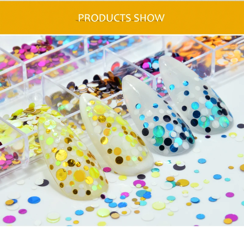 12 ячеек разноцветные круглые блестящие хлопья для ногтей 1/2/3 мм 3D блестки пайетка