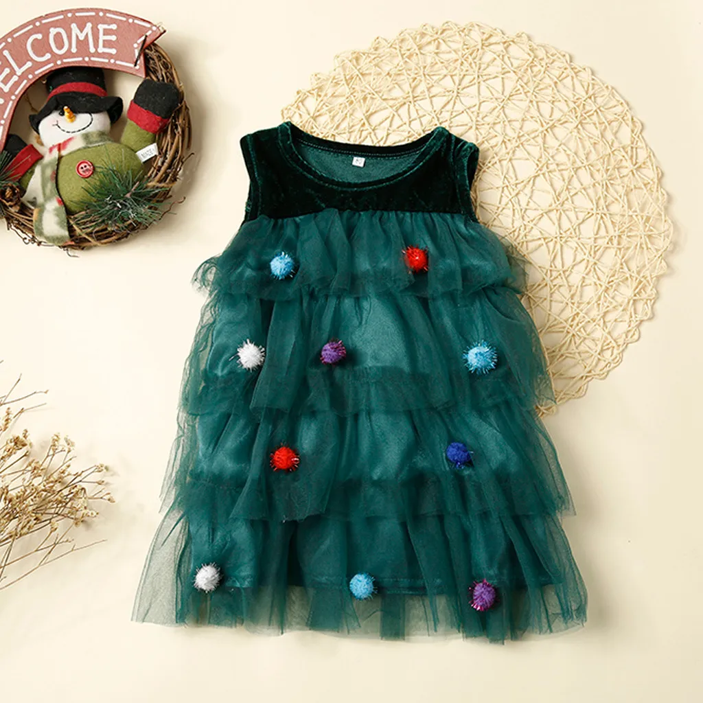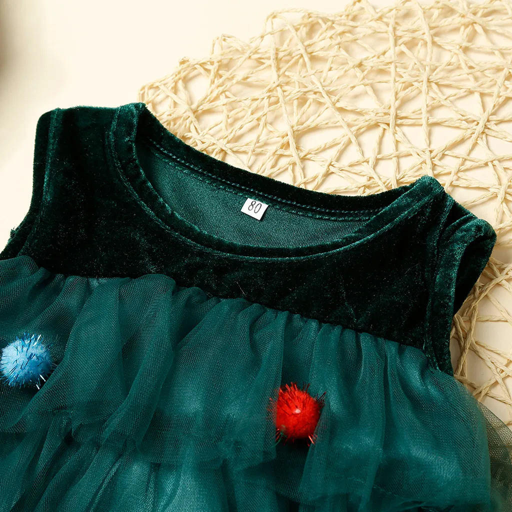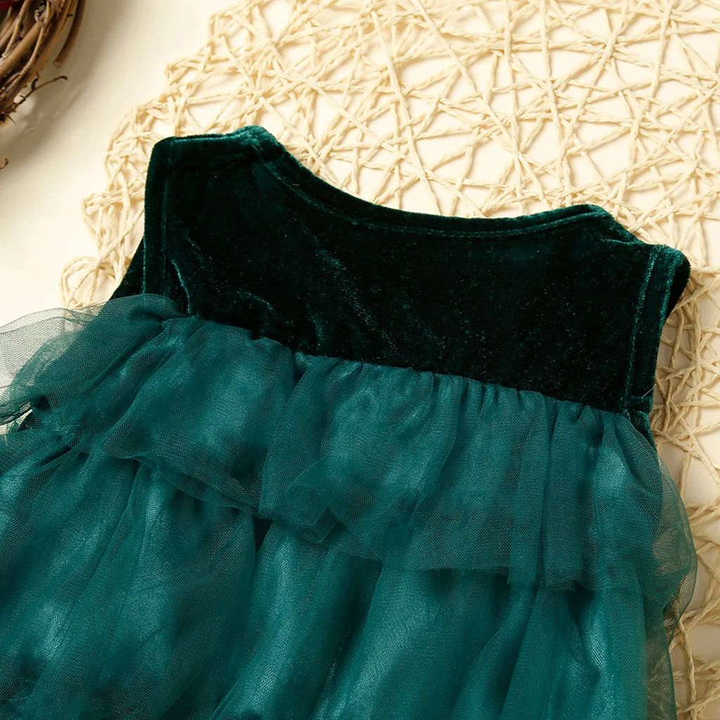 Взрывное платье для девочек, зеленое Сетчатое платье без рукавов из пряжи и бархата, платье для рождественской елки, 50 *