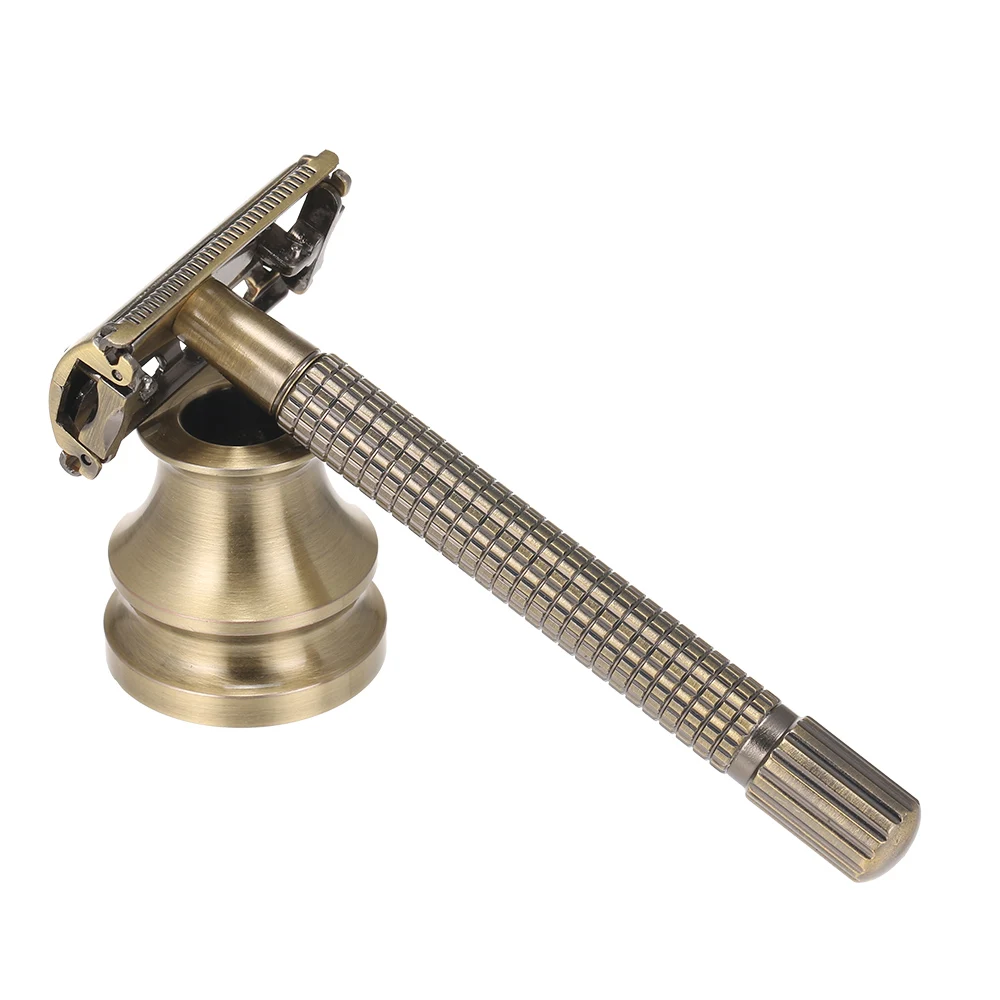 Двойная окантованная Безопасная бритва с длинной ручкой и держателем для бритвы бабочка открытая бритва чистая Бритва для мужчин