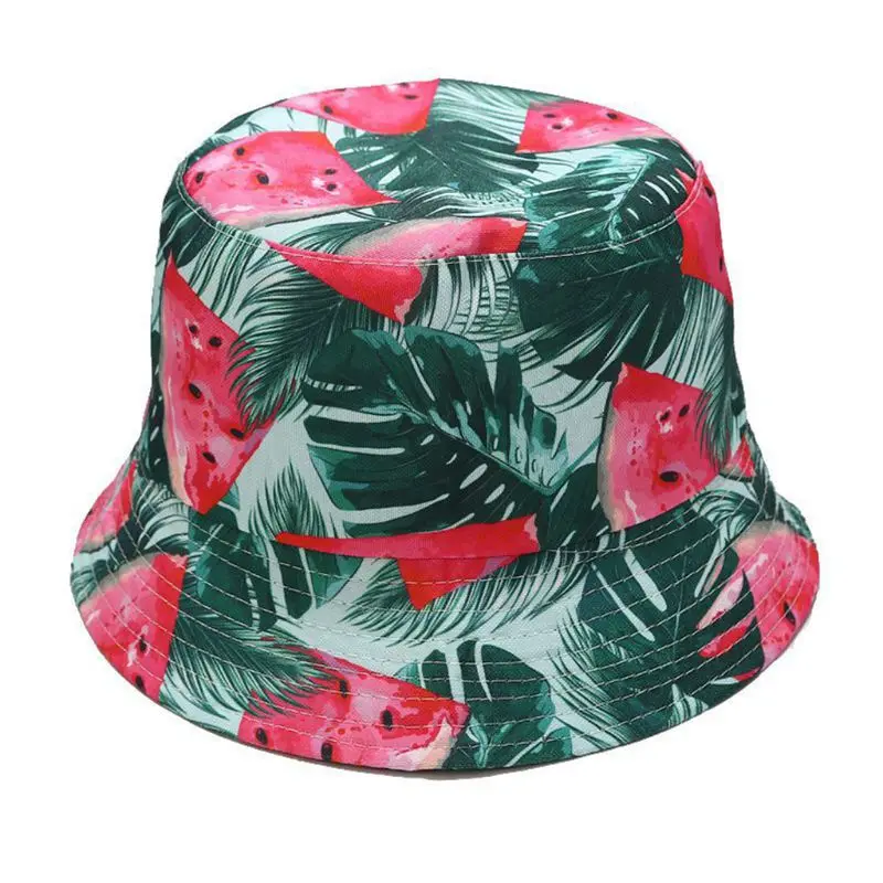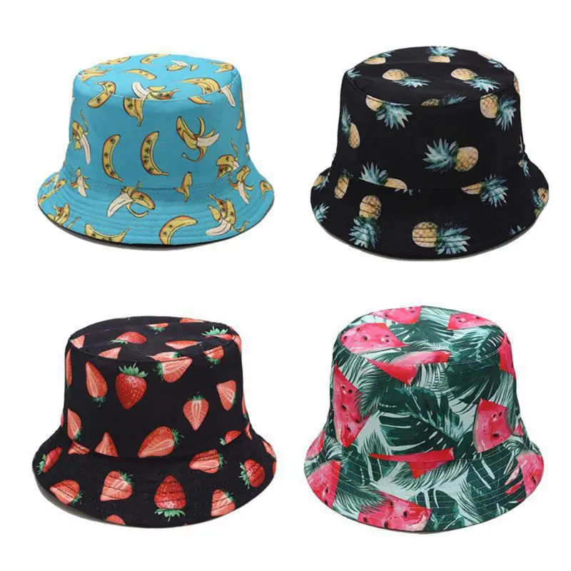 Унисекс, летняя Двусторонняя одежда, двусторонняя Панама, богемный принт с фруктами, складная Повседневная Кепка в рыбацком стиле