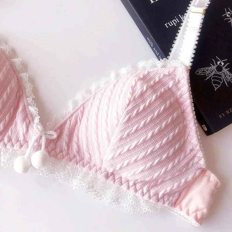 Комплект из бюстгальтера и трусиков, треугольная чашка, My Melody, комплект сексуального нижнего белья без косточек, женское кружевное нижнее белье