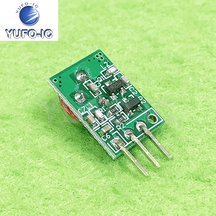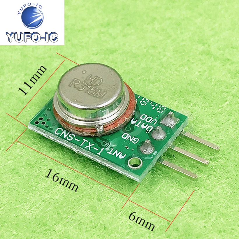 Этот модуль изготовлен из 315 МГц или 433,92 МГц резонатора и высокомощной радиочастотной цепи. Это относится к задаче модуляции излучения. Он может сотрудничать с широко используемой схемой получения Супер регенерации или сверхгетеродинной приемной схемой. Он обладает высокой частотой стабильности. Внешний кодирующий чип или порт передачи данных. Только при нажатии кнопки может быть потребление тока. Он не потребляет электричество в обычное время и прост в использовании.