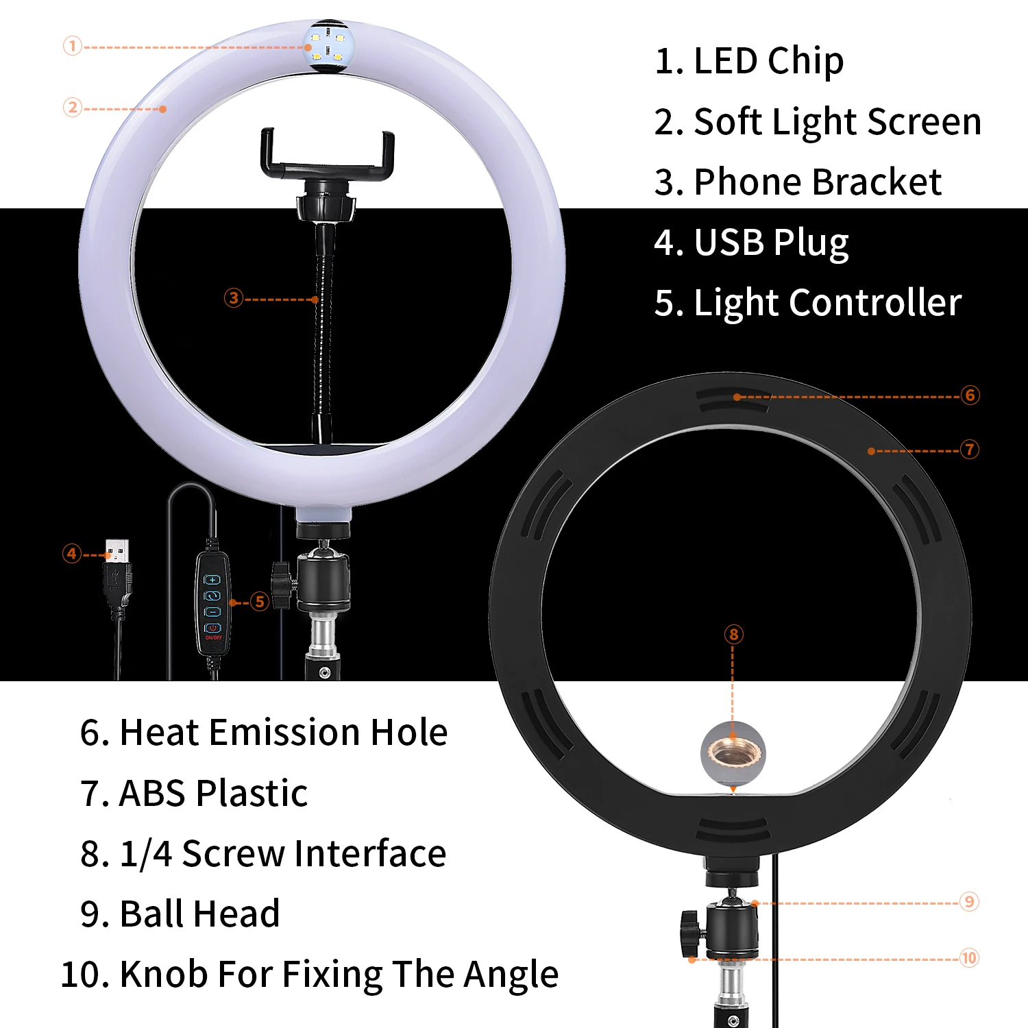 Описание: Диммируемый светодиодный кольцевой светильник fosoto 10 дюймов с широким диапазоном освещения в 1%-100%. Специальный светодиодный дизайн, легкий и портативный. Привод постоянного тока, низкие потери мощности. Отсутствие ультрафиолетового и инфракрасного излучения светильник излучения, низкая теплоотдача, безопасность и защиту окружающей среды. Длительный срок службы более 50000 часов. С усиленной гибкой рукой, которая будет свободно двигаться и никогда не упадет. Сверхдлинный шнур и сверхпрочные винты с барашком. Широко применяется при естественном освещении под обстановку вне светильник, наполнитель светильник портретной съемке, на модных показах, свадьбах, рекламной съемке, съемке видео и т. д. Технические характеристики: Светодиодный ные лампы: 120 шт. Форма: Кольцо Внешний диаметр: 26 см Общая мощность: 10 Вт Цветовая температура: 3200K-5600K Регулировка яркости: Да Диапазон регулировки яркости: 1%-100% Адаптер: USB Это USB-разъем