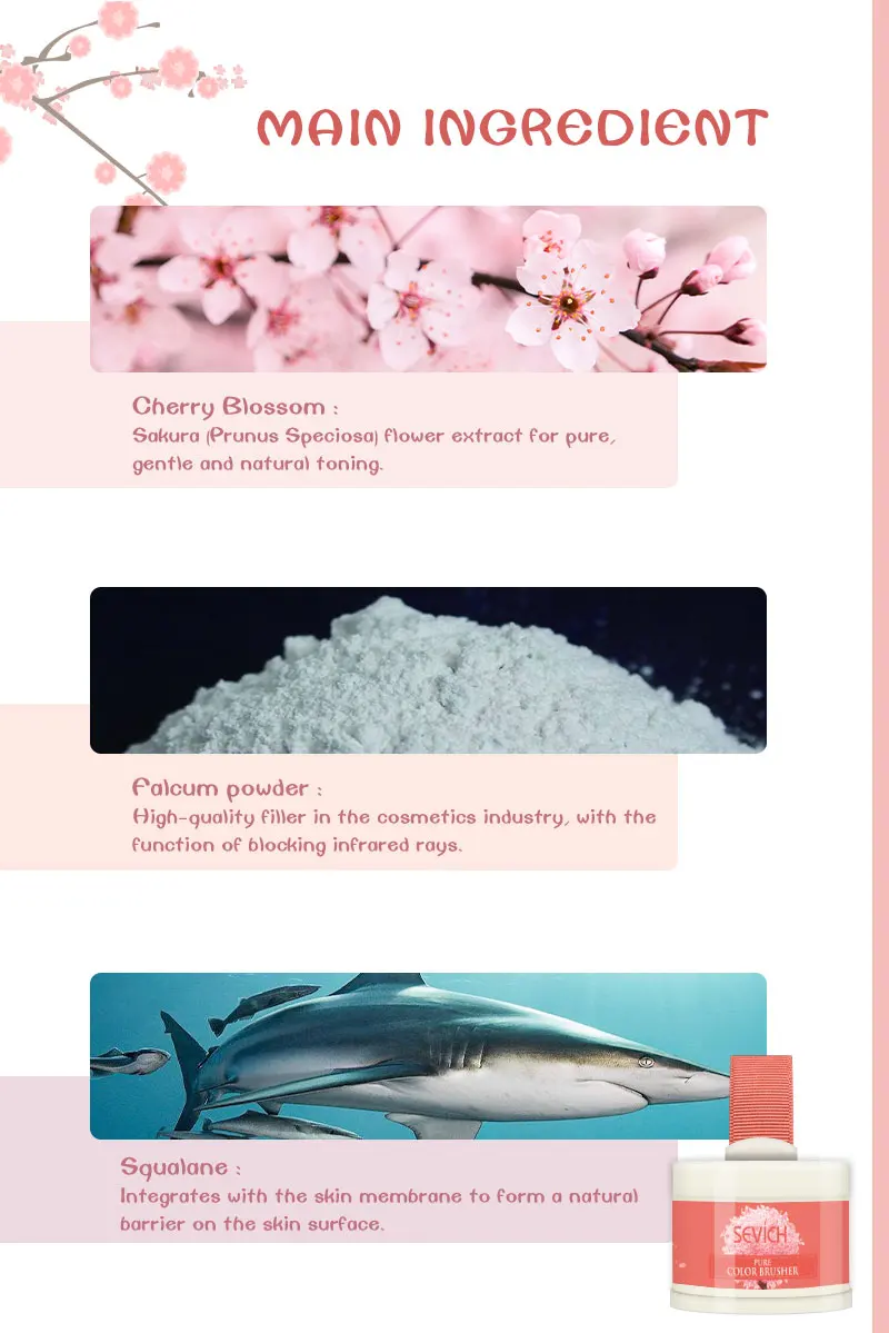 Используйте буффу, чтобы окунуть в нужное количество, и аккуратно погладьте по щекам. Эссенция экстракта растительного материала Сакура (Prunus Speciosa), экстракт цветка для чистого, мягкого и естественного тонизирования. Легко наносится и окрашивается с помощью равномерной окраски, развивающих технологий и технологии регулировки частиц. Содержит ингредиенты, которые ингибируют Активный кислород, защищают слабую кожу и поддерживают увлажняющий долговечный блеск.