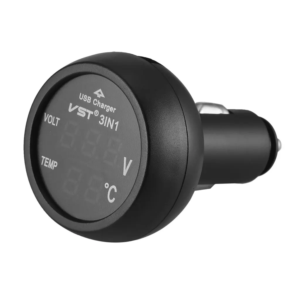 1*3 в 1 Автомобильное зарядное устройство Вольтметр термометр