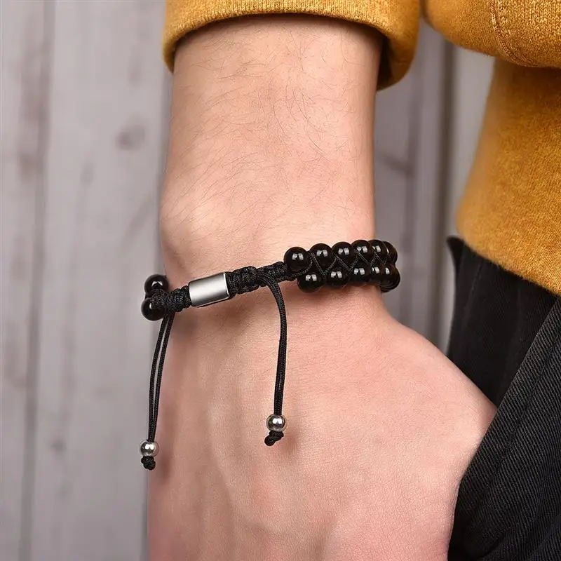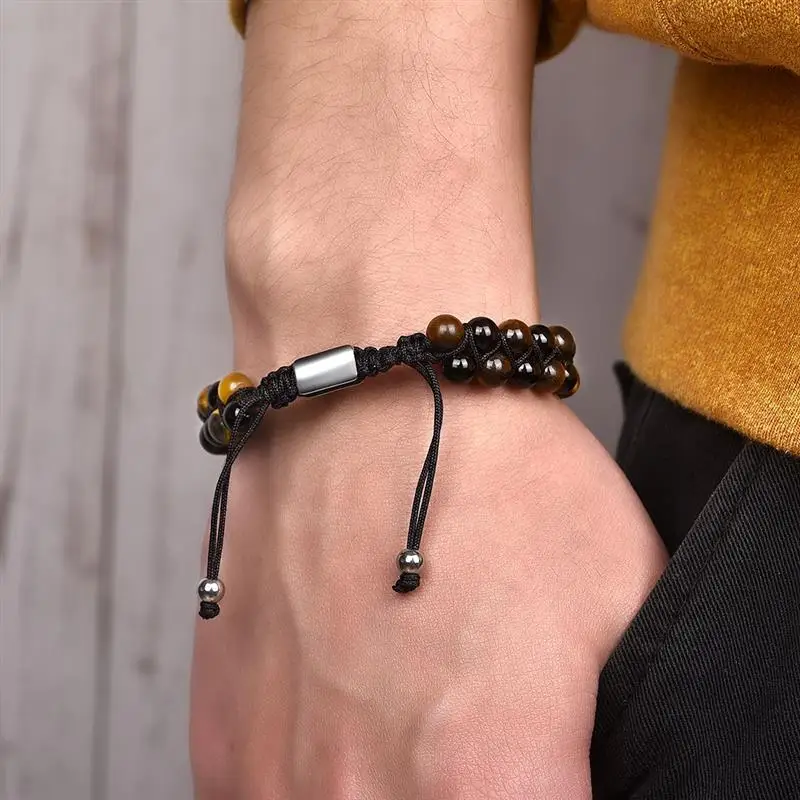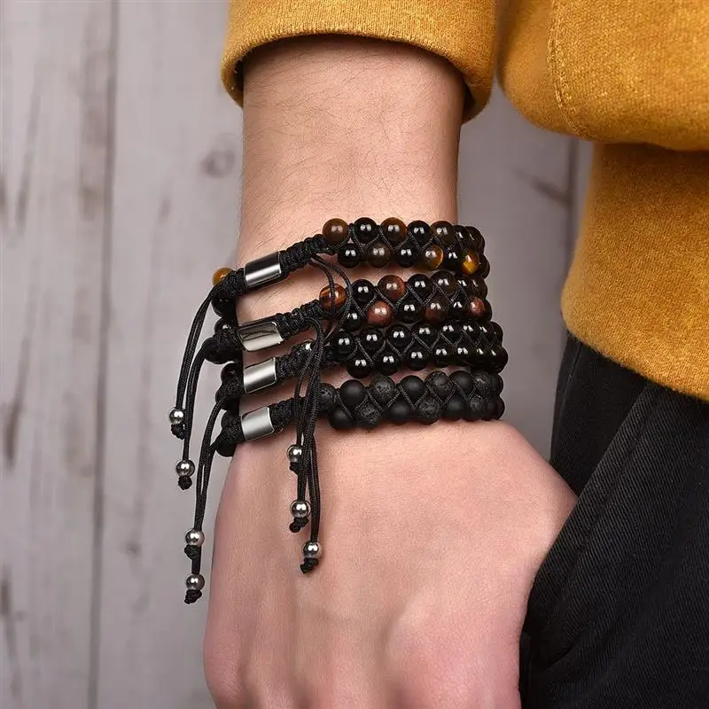 Adjustable Lava Stone Bracelet Men Tiger Eye Beads Braided Rope Bracelets Yoga Healing Bangle Wood Beads Bracelet Brand Jewelry