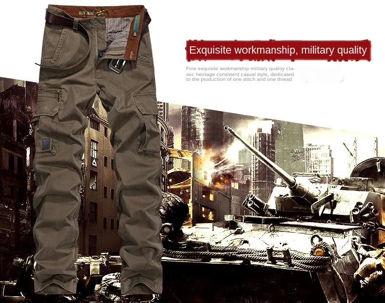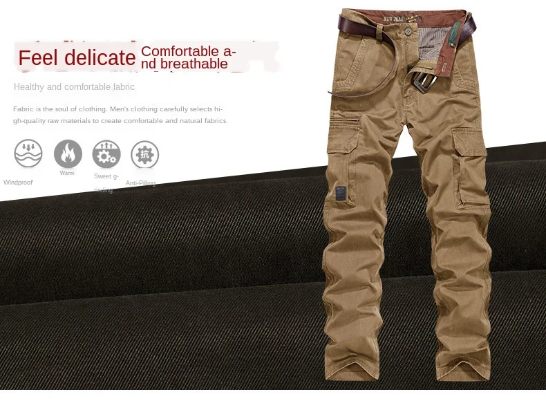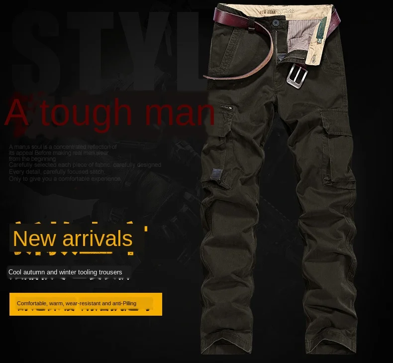 Брюки карго для мужчин брюки осень зима толстые большие карманы дизайн полный