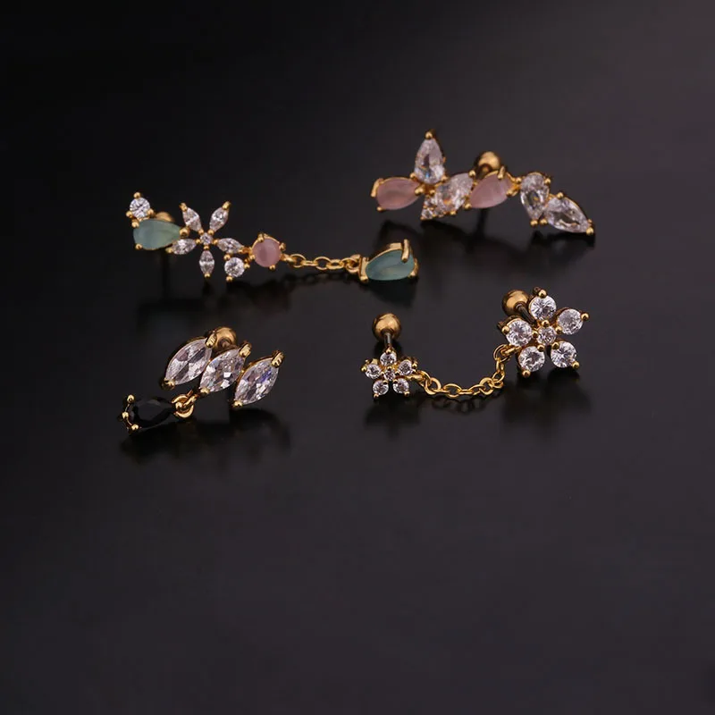 CZ Flower New Fashion Ear Studs Helix Piercing Cartilage Earring Conch Rook Tragus Stud Ear Piercing Jewelry