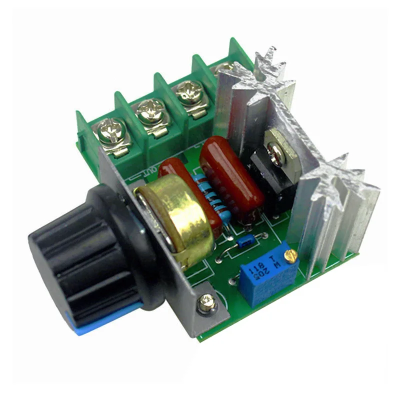 Примечание: Возможны отклонения в 1-3 мм вследствие измерений вручную. Из-за различных дисплеев и различного светильник, изображение может не отражать фактический цвет товара. Спасибо за понимание. Технические характеристики: Материалы сопротивления: металл и пластик Входное напряжение: 220 В переменного тока Регулирование напряжения: 50-220 В переменного тока Максимальная мощность: 2000 Вт Размер: 48x56x28 мм Подключите это устройство к лампе или бытовой технике в серии подключения, затем поверните ручку для затемнения, скорости, напряжения, контроля температуры. Поскольку мощность очень большая, поэтому нормальная бытовая техника или небольшие фабрики достаточно для использования. Этот регулятор давления с двухсторонним кремниевым управлением высокой мощности, потенциометр имеет гайки, не требует добавления каких-либо компонентов, очень удобный и практичный Применимый прибор: электрическая печь, водонагреватель, лампы, небольшой двигатель, электрический утюг. И так далее