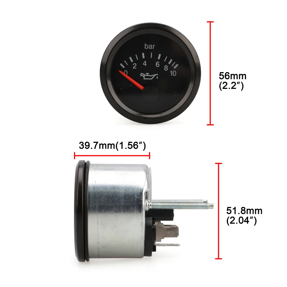 Диаметр отверстия панели: 52 мм-2 1/16" Диапазон: от 0 до 10 бар Рабочее напряжение: 12 вольт постоянного тока Цвет: черный Поставляется с лампочкой, кронштейном и 2 винтами Если не указано, что этот список предназначен для одного элемента