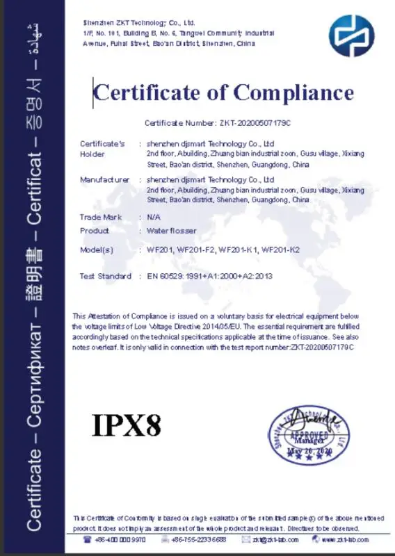 Уровень водонепроницаемости: IPX8