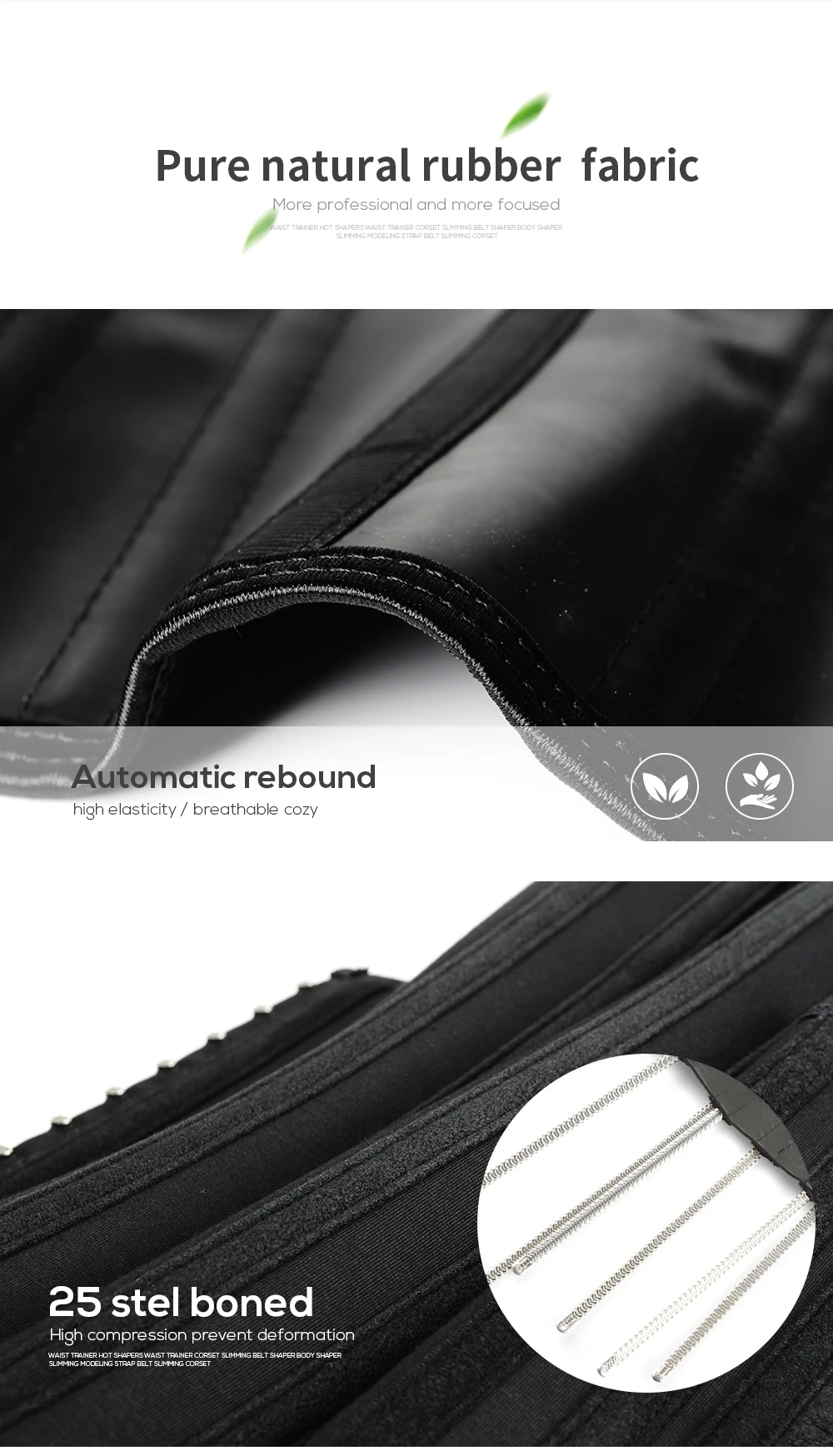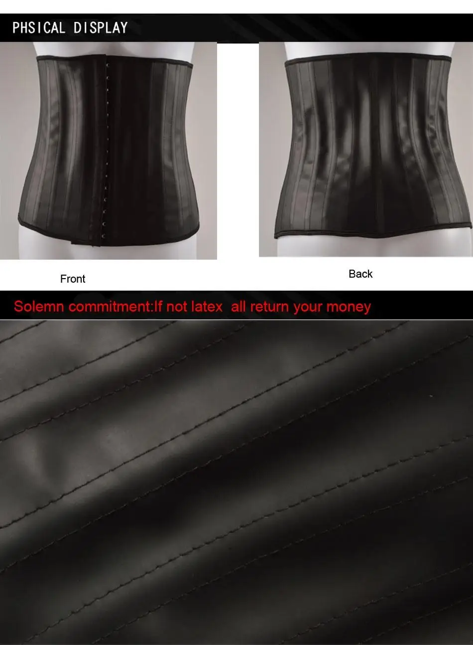 * Помогает в потере веса * Помогает с контролем аппетита * Дает вам мгновенный меньший вид * Облегчение боли в спине * Хорошая осанка Название продукта: латексный тренажер для талии Размер: XXS-6XL Материал: латекс, хлопок Украшение: крючок Boned: 25 шт стальных костей Выбор цвета: черный, кремовый