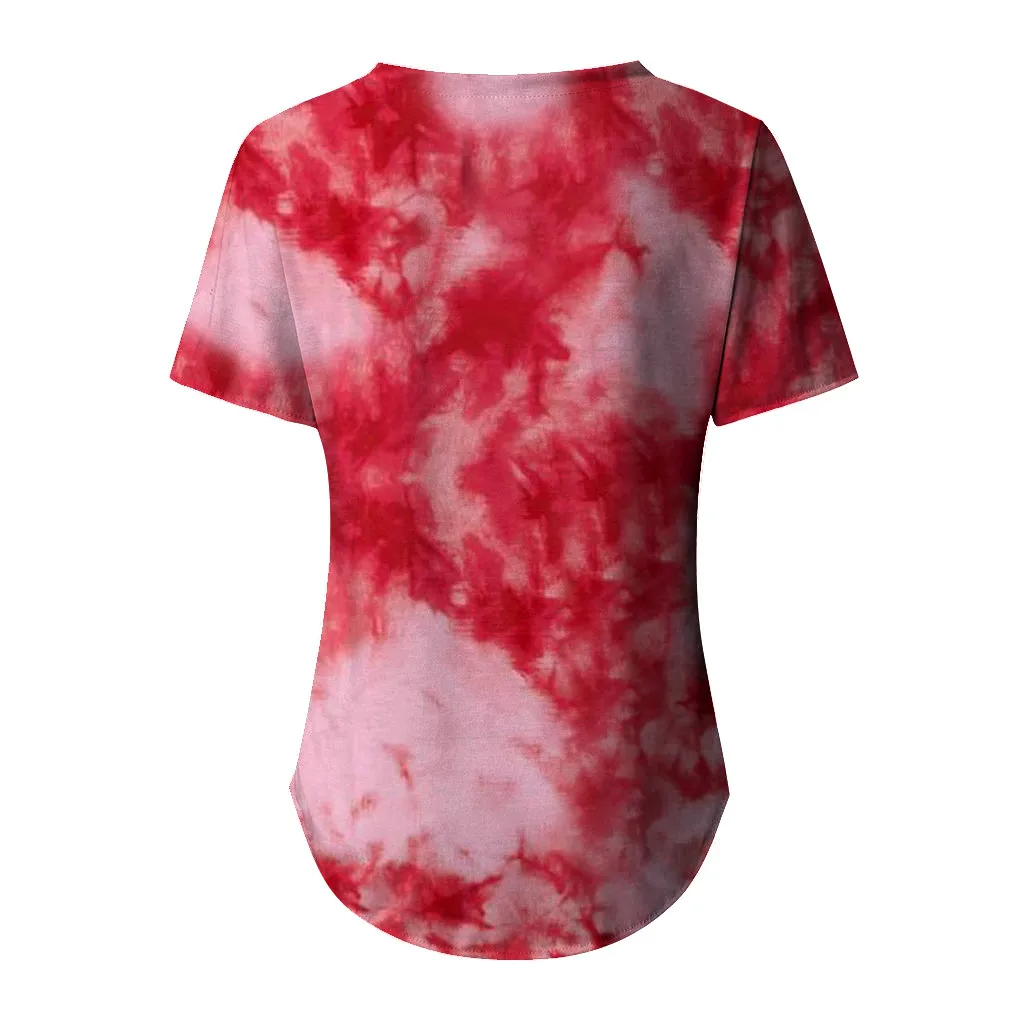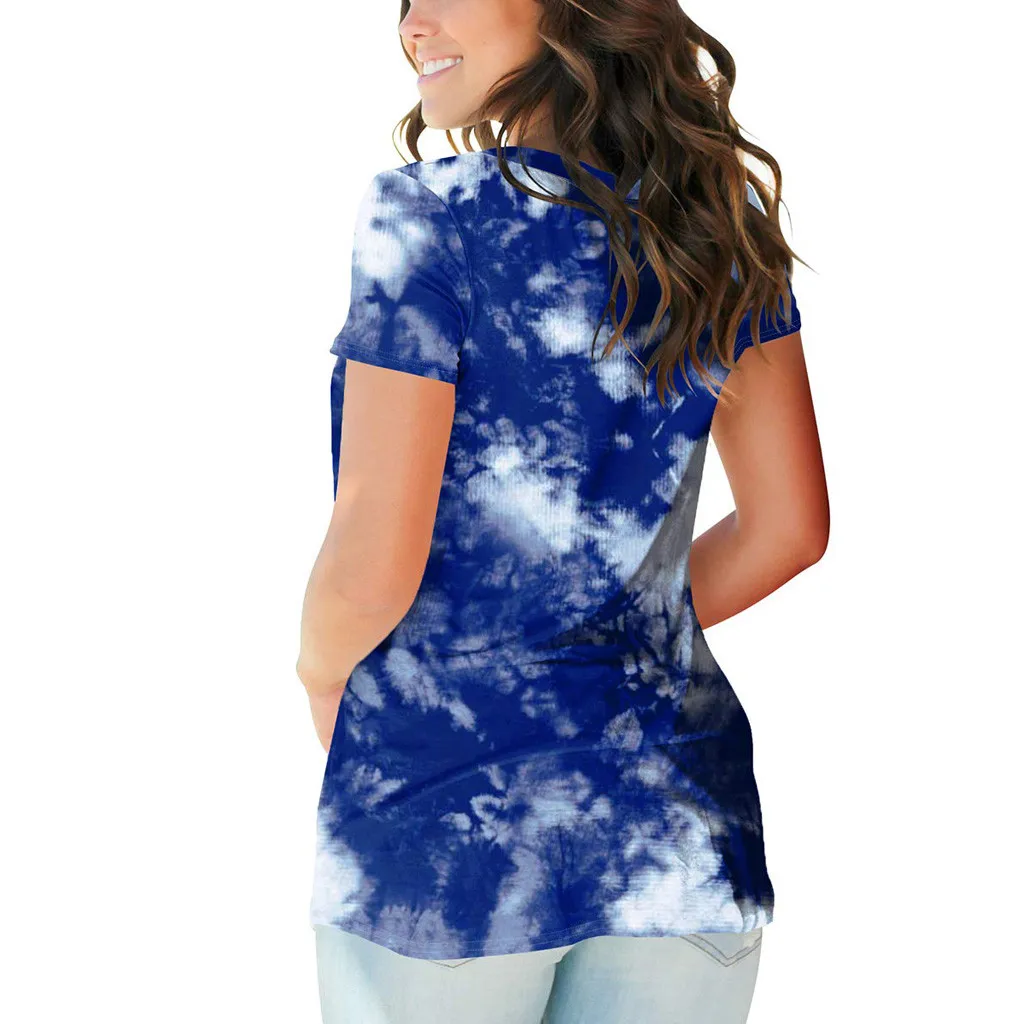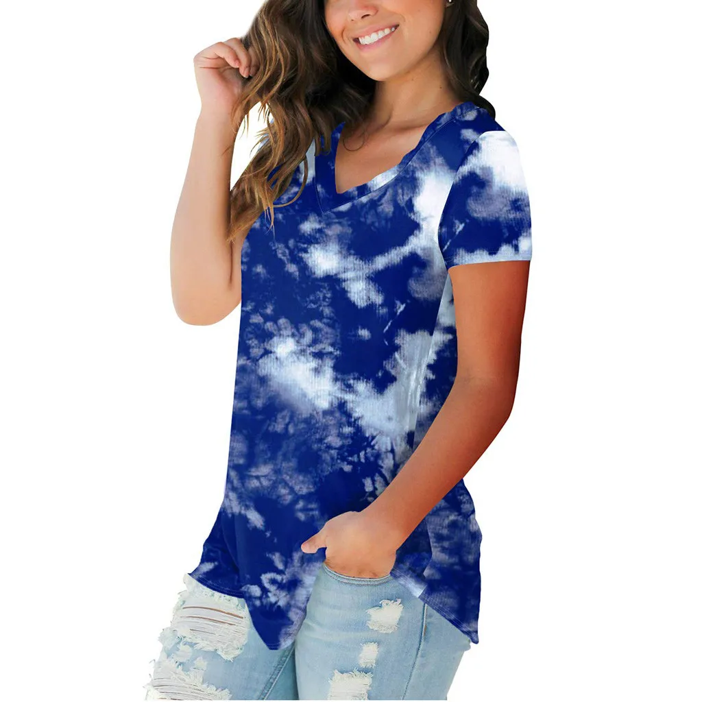 1. Особенности: повседневная одежда размера плюс, градиентный цвет, v-образный вырез, короткий рукав, футболка, Топы, повседневная одежда, стильный и модный дизайн, Летние повседневные топы