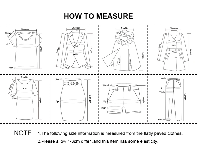 S ширина плеч:/длина рукава:/Бюст: 82 талия: 66 Общая длина: 51 M ширина плеч:/длина рукава:/Бюст: 86 талия: 70 Общая длина: 52 L Ширина плеч:/длина рукава:/Бюст: 90 талия: 74 Общая длина: 53 Примечание: 1 дюйм = 2,54 см, 1 см = 0,39 дюймов При измерении вручную допускается погрешность в 2-3 см, что является нормальным