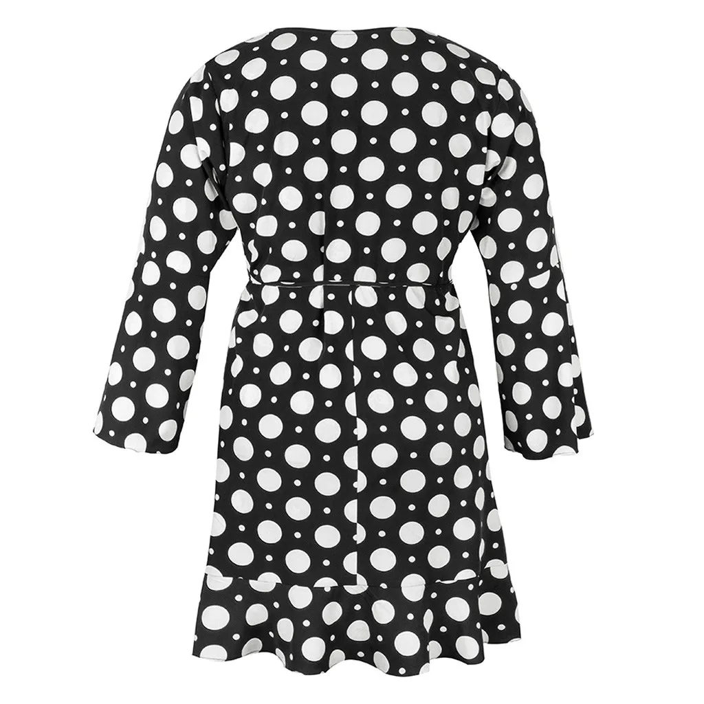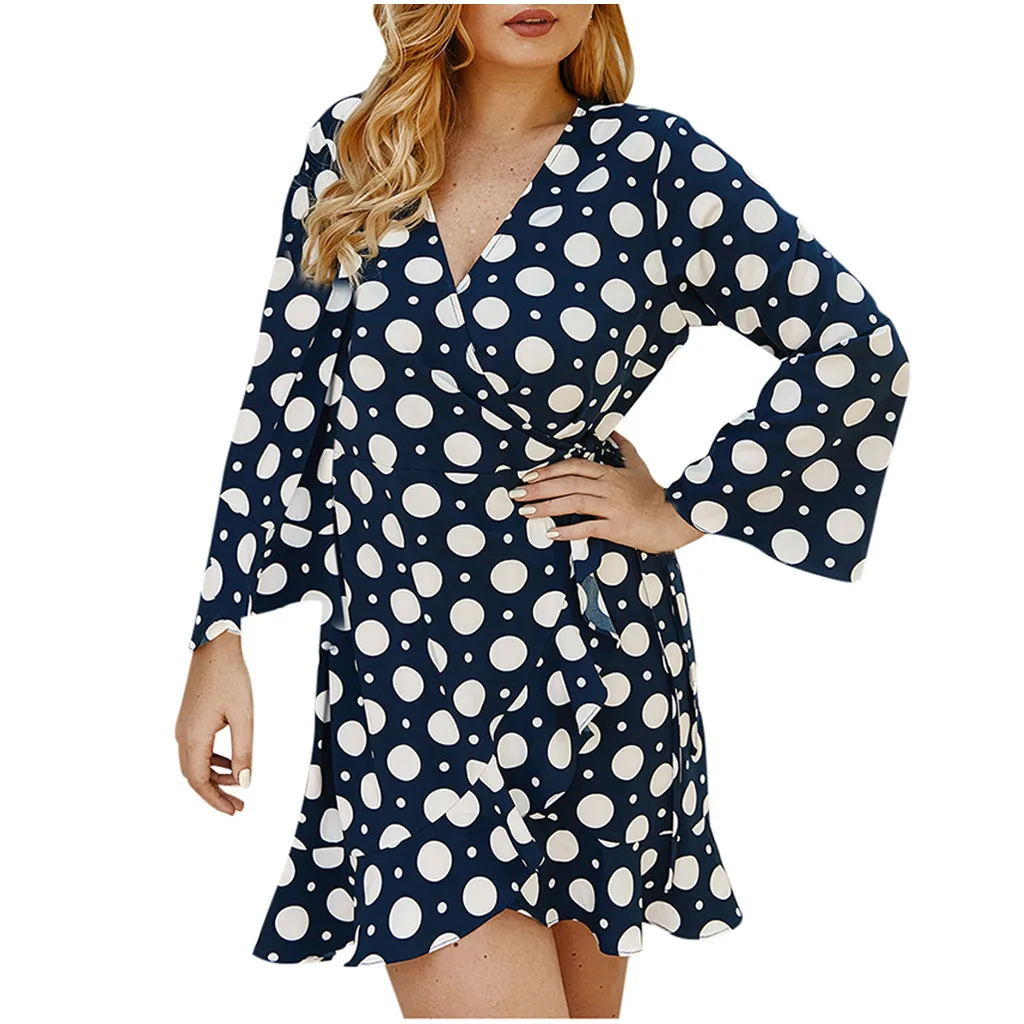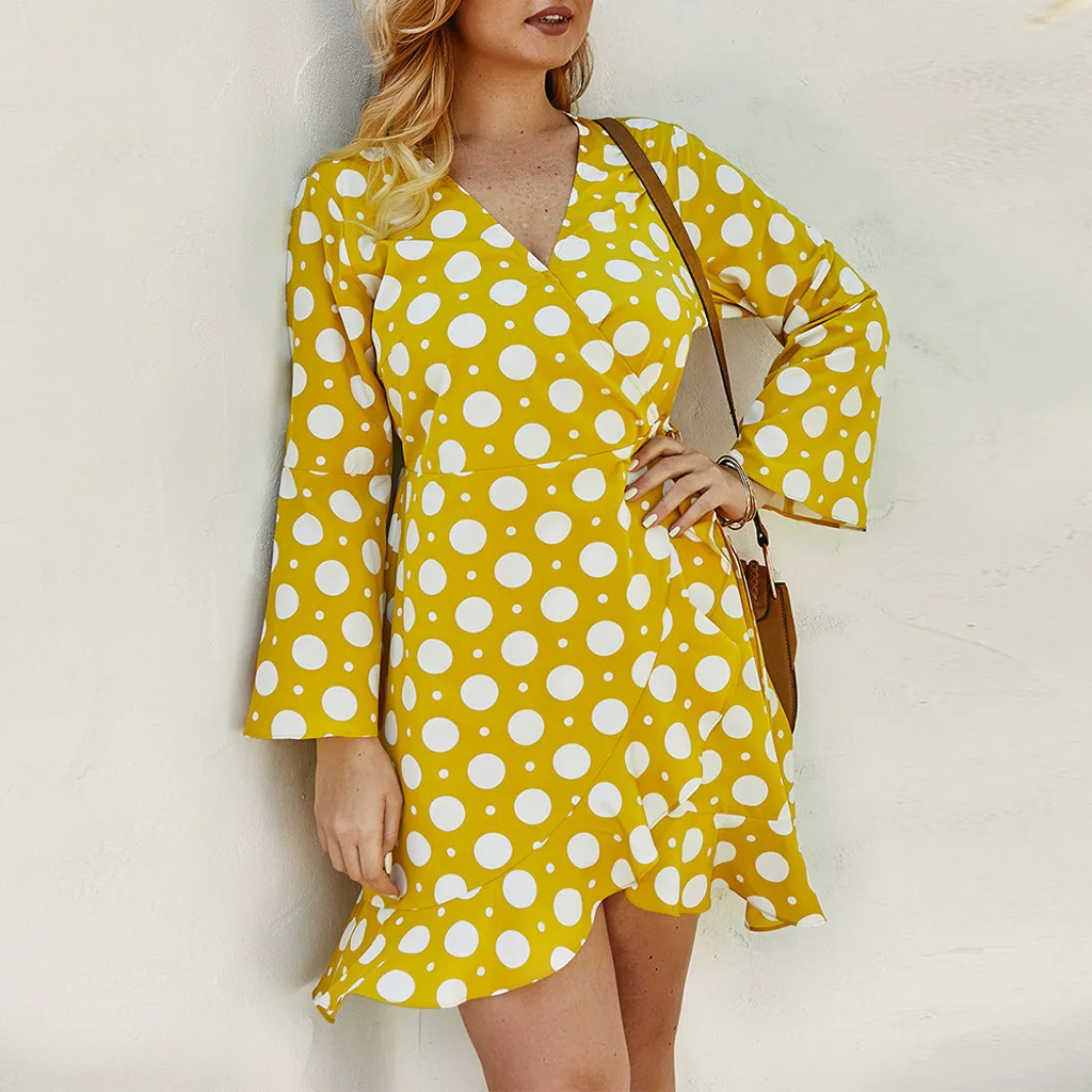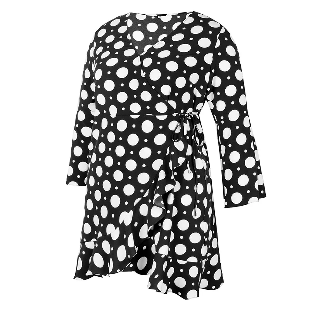 Женское модное Повседневное платье-сарафан в горошек с длинным рукавом и v-образным вырезом