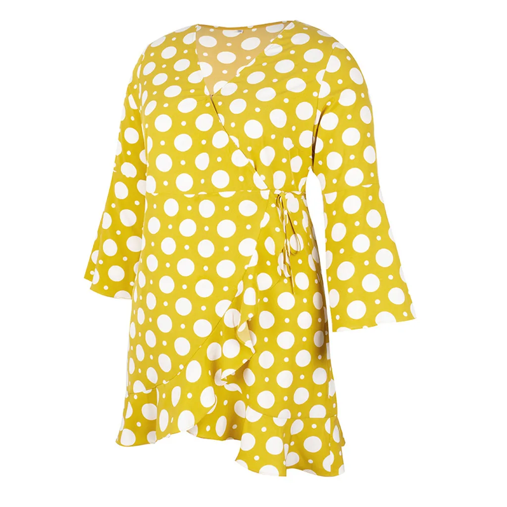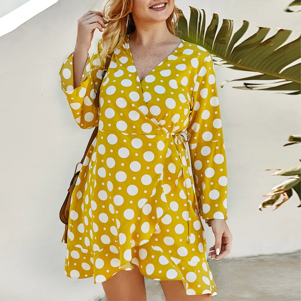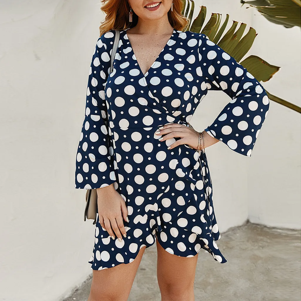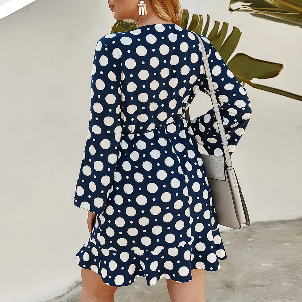 Женское модное Повседневное платье-сарафан в горошек с длинным рукавом и v-образным вырезом
