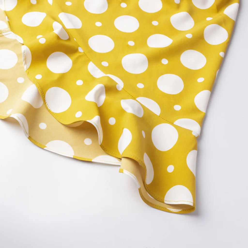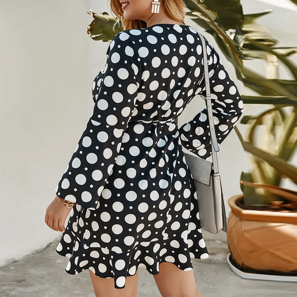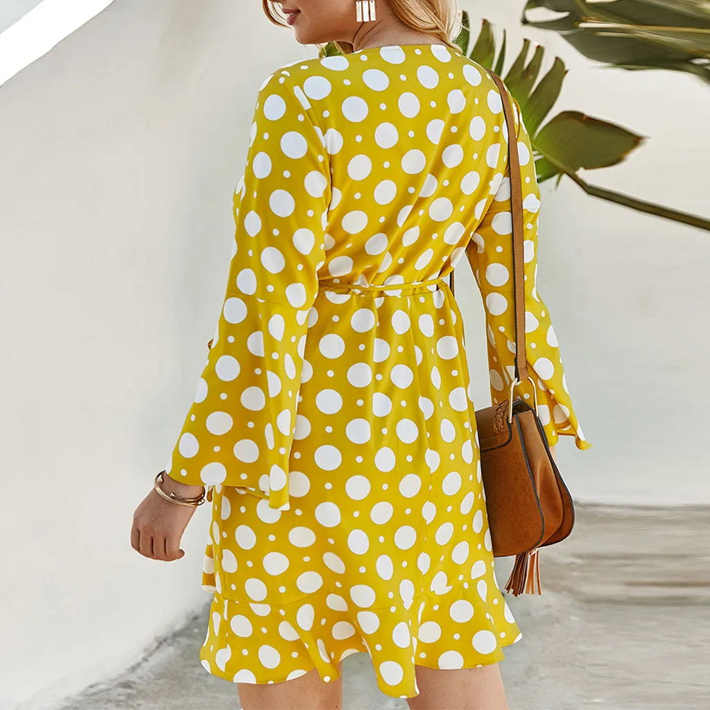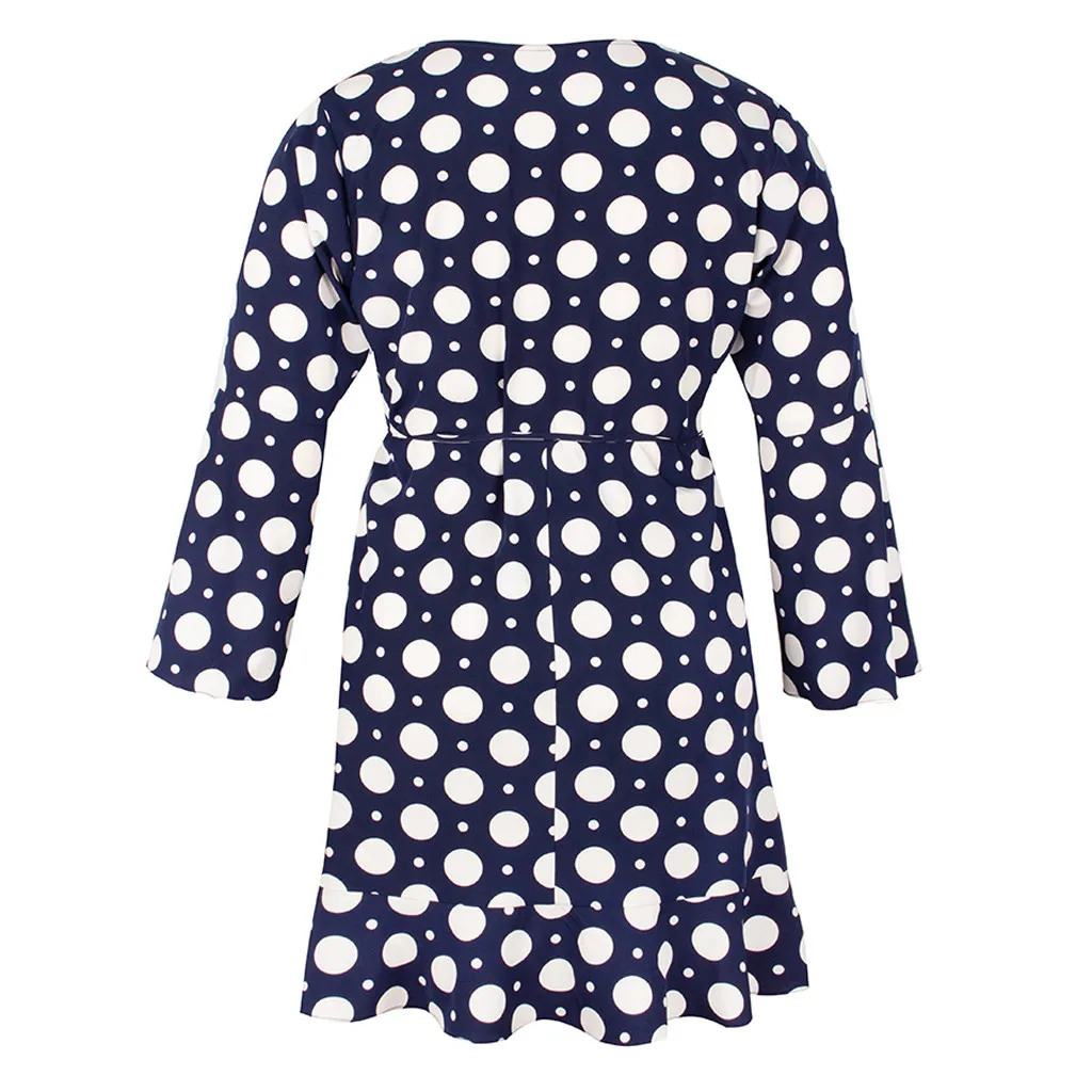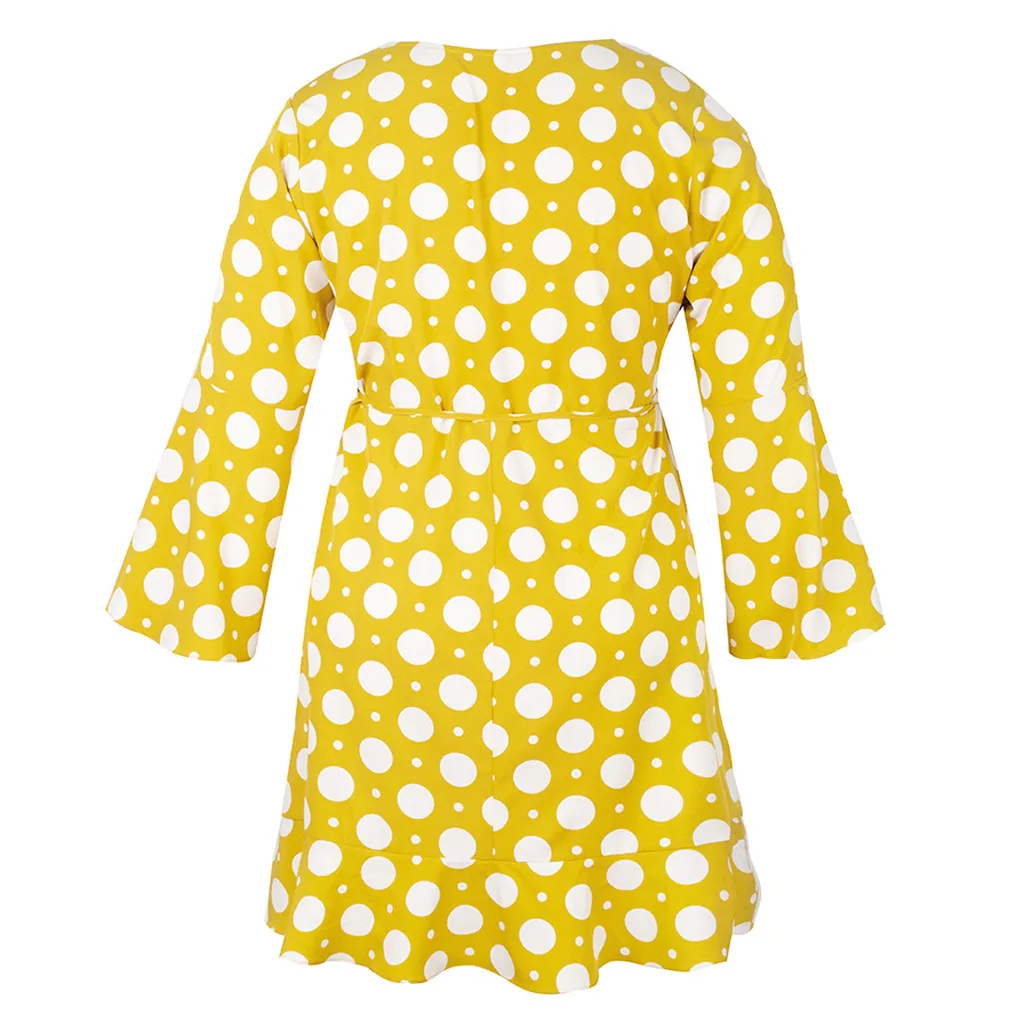 Женское модное Повседневное платье-сарафан в горошек с длинным рукавом и v-образным вырезом