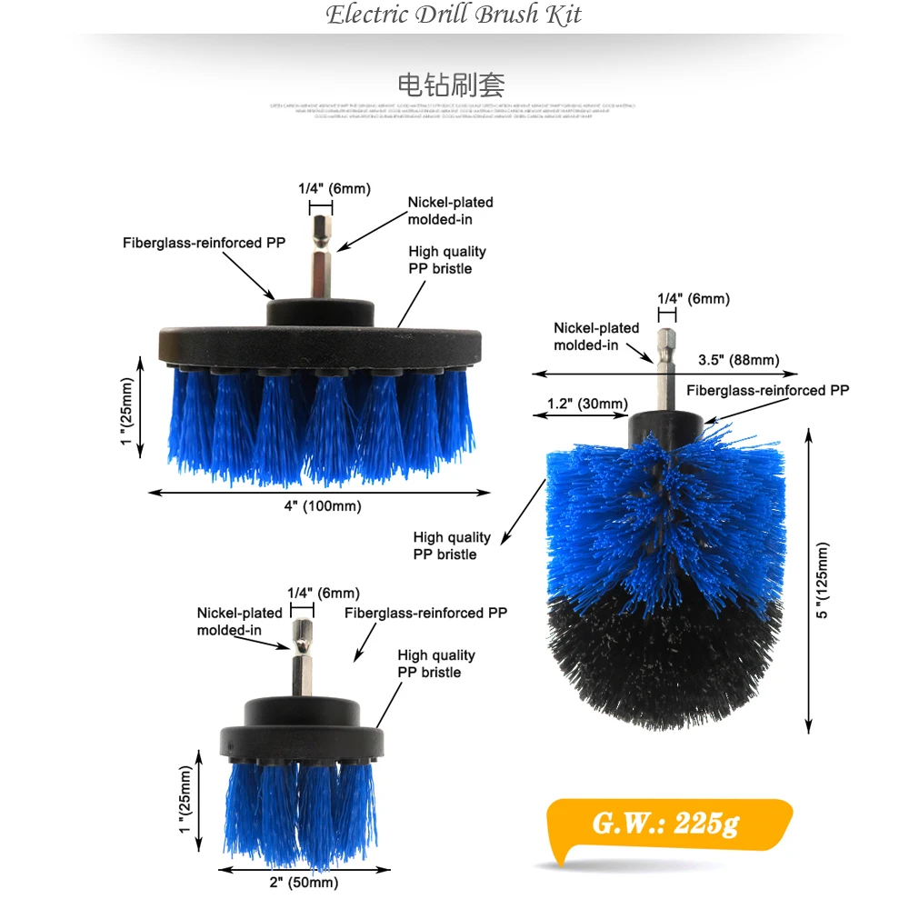 Посылка включает в себя: 1 x 2-Дюймовая щетка для чистки сверл 1 x 3,5-дюймовая щетка для чистки сверл 1 x 4-дюймовая щетка для чистки сверл Спецификация: Цвет: красный, синий, белый Материал: Высококачественная полипропиленовая щетина Хвостовик: 1/4 " (6 мм) Особенности: Экономьте время. Высокое качество и долговечность. Удобно использовать. Подходит для всех ручных дрелей. Применение: Кисти для электроинструмента в основном используются для бытовой чистки, например, дивана, кухни, ванной комнаты, дерева, плитки, автомобильных колес и т. д. Шлифовальная задняя панель может быть установлена на дрели для полировки и шлифования с помощью дисков на липучке. Примечание: в комплект не входят сверла