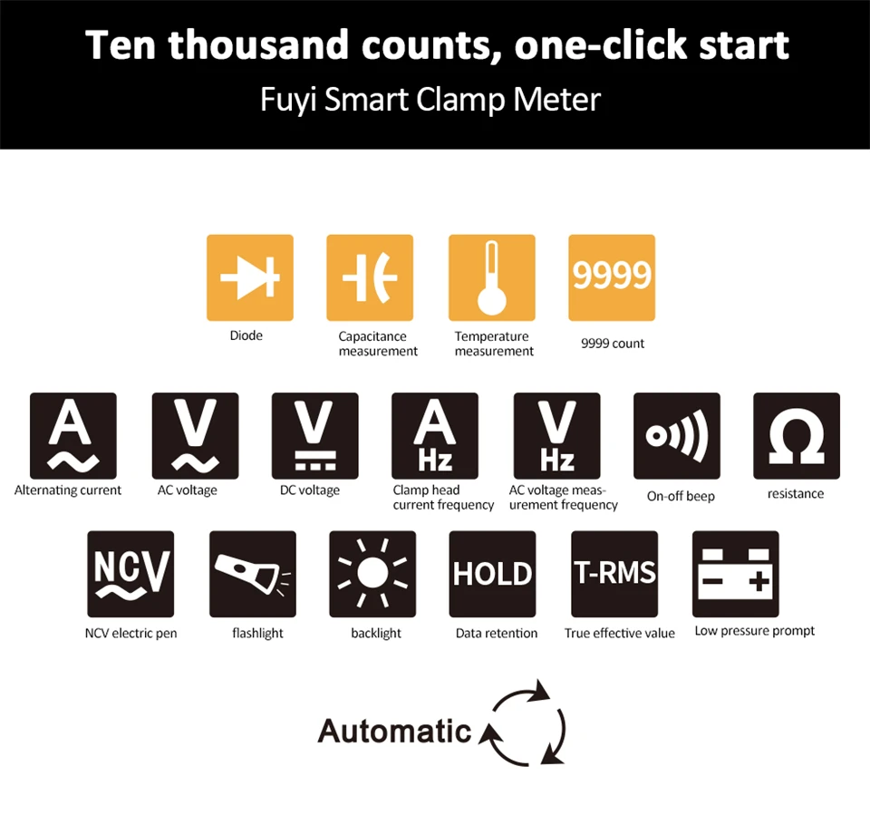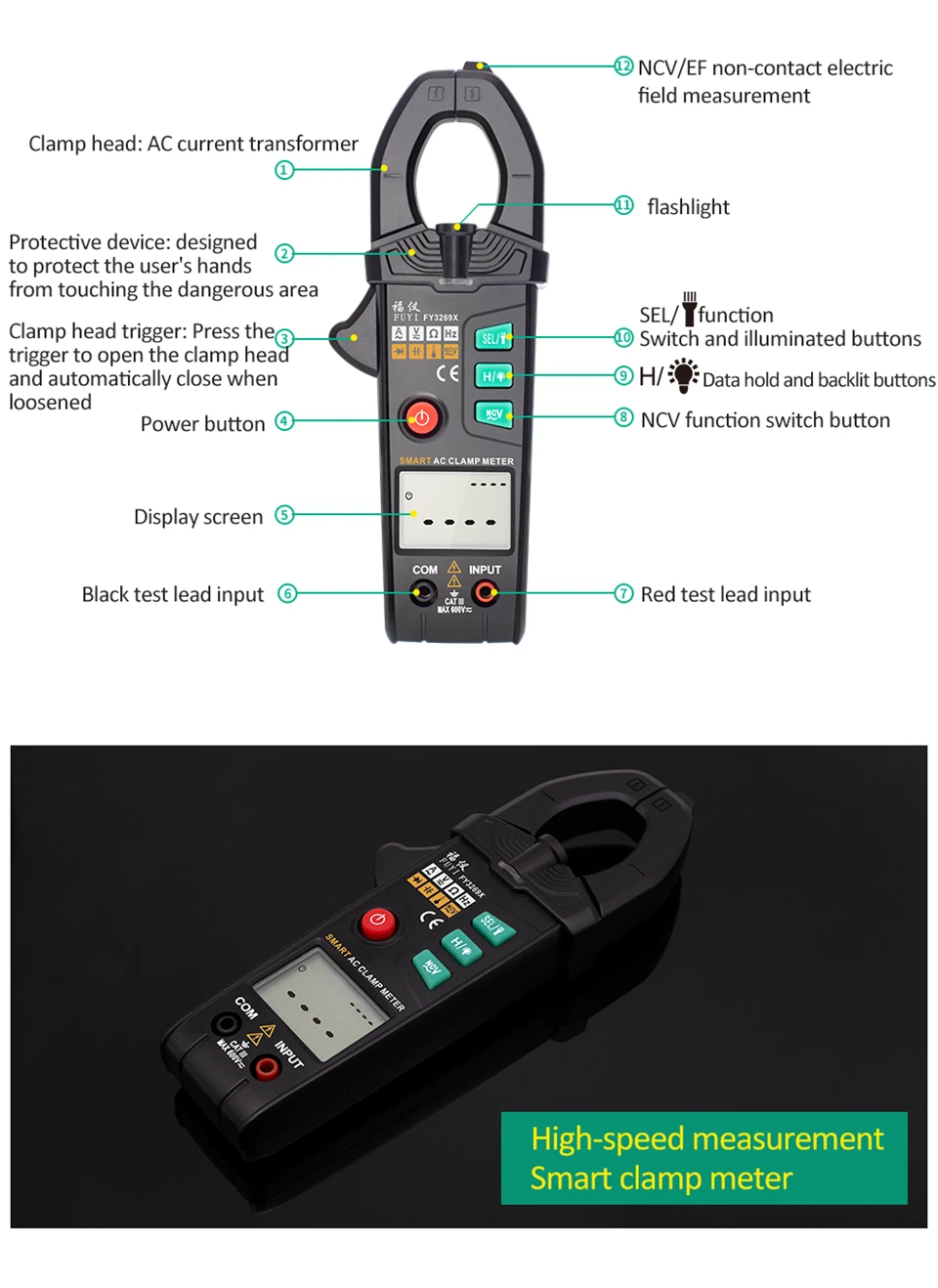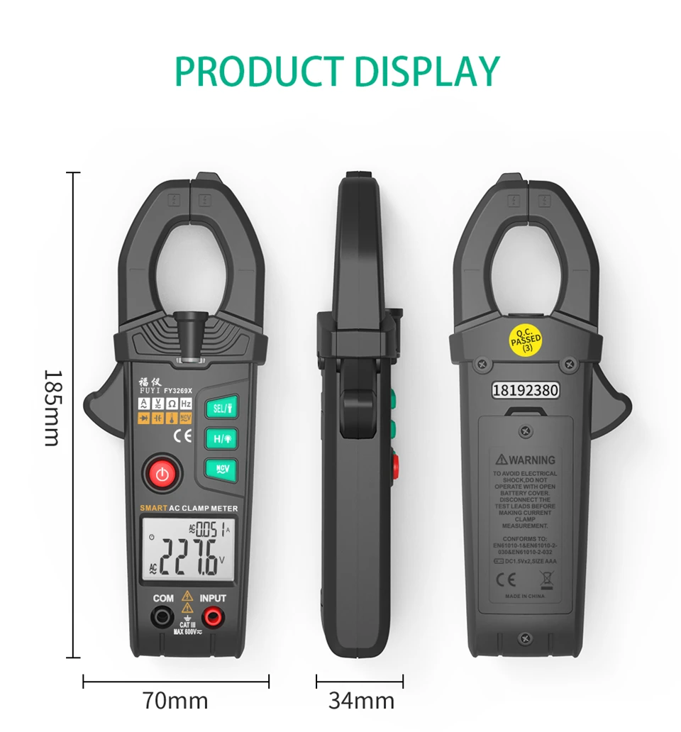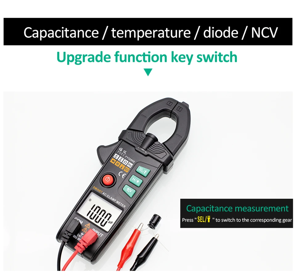 H.Богатые часто используемые функции. В дополнение к вышеперечисленным функциям, этот продукт имеет следующие функции: измерение напряжения переменного и постоянного тока, измерение переменного тока, измерение сопротивления, измерение емкости, Измерение частоты, измерение диодов, проверка непрерывности, различный нейтральный и живой провод, хранение данных, фонарик, автоматическое отключение, И т. Д. Не беспокойтесь о недостатке определенной функции в ежедневном использовании.
