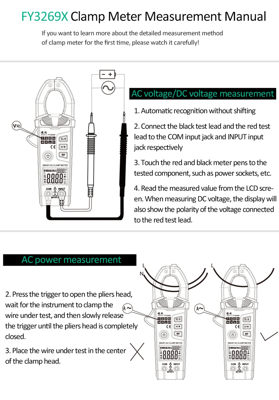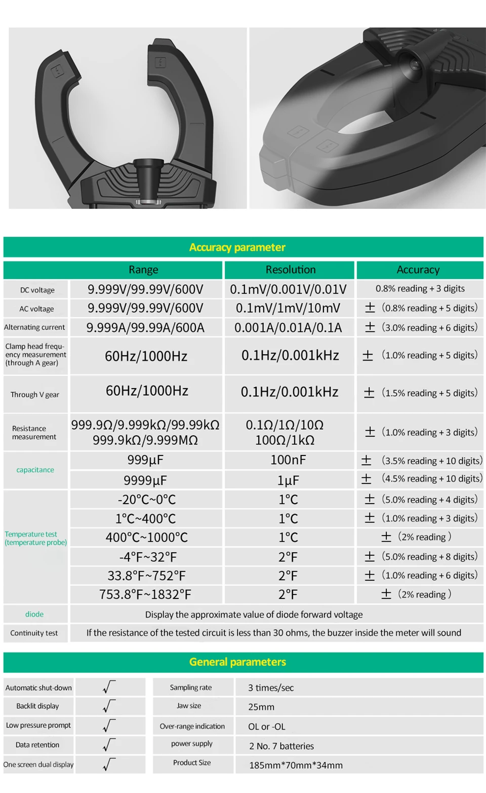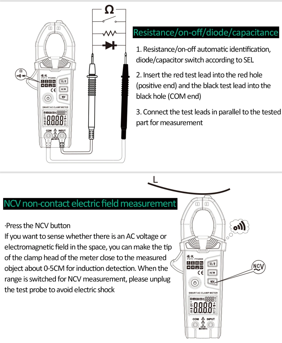 H.Богатые часто используемые функции. В дополнение к вышеперечисленным функциям, этот продукт имеет следующие функции: измерение напряжения переменного и постоянного тока, измерение переменного тока, измерение сопротивления, измерение емкости, Измерение частоты, измерение диодов, проверка непрерывности, различный нейтральный и живой провод, хранение данных, фонарик, автоматическое отключение, И т. Д. Не беспокойтесь о недостатке определенной функции в ежедневном использовании.