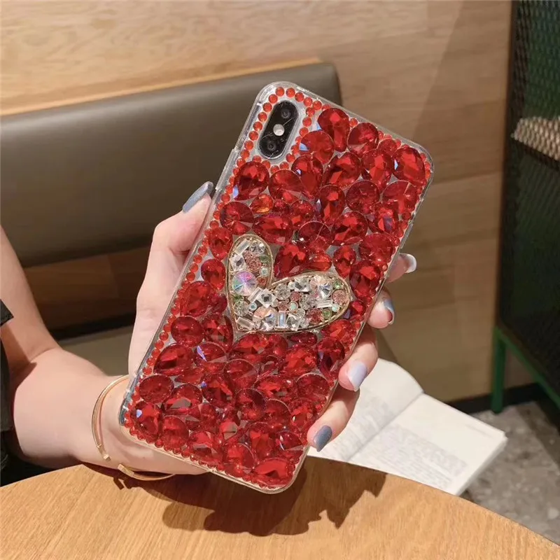 100% ручная работа, роскошные толстые стеклянные стразы, прозрачный чехол для телефона. Высокое качество камень. Металлическая отделка сердца.