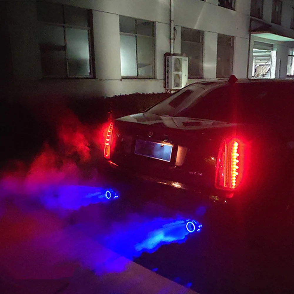 Универсальный автомобильный глушитель, светодиодный, красный, синий, светильник, модифицированный, одинарный, выхлопная труба