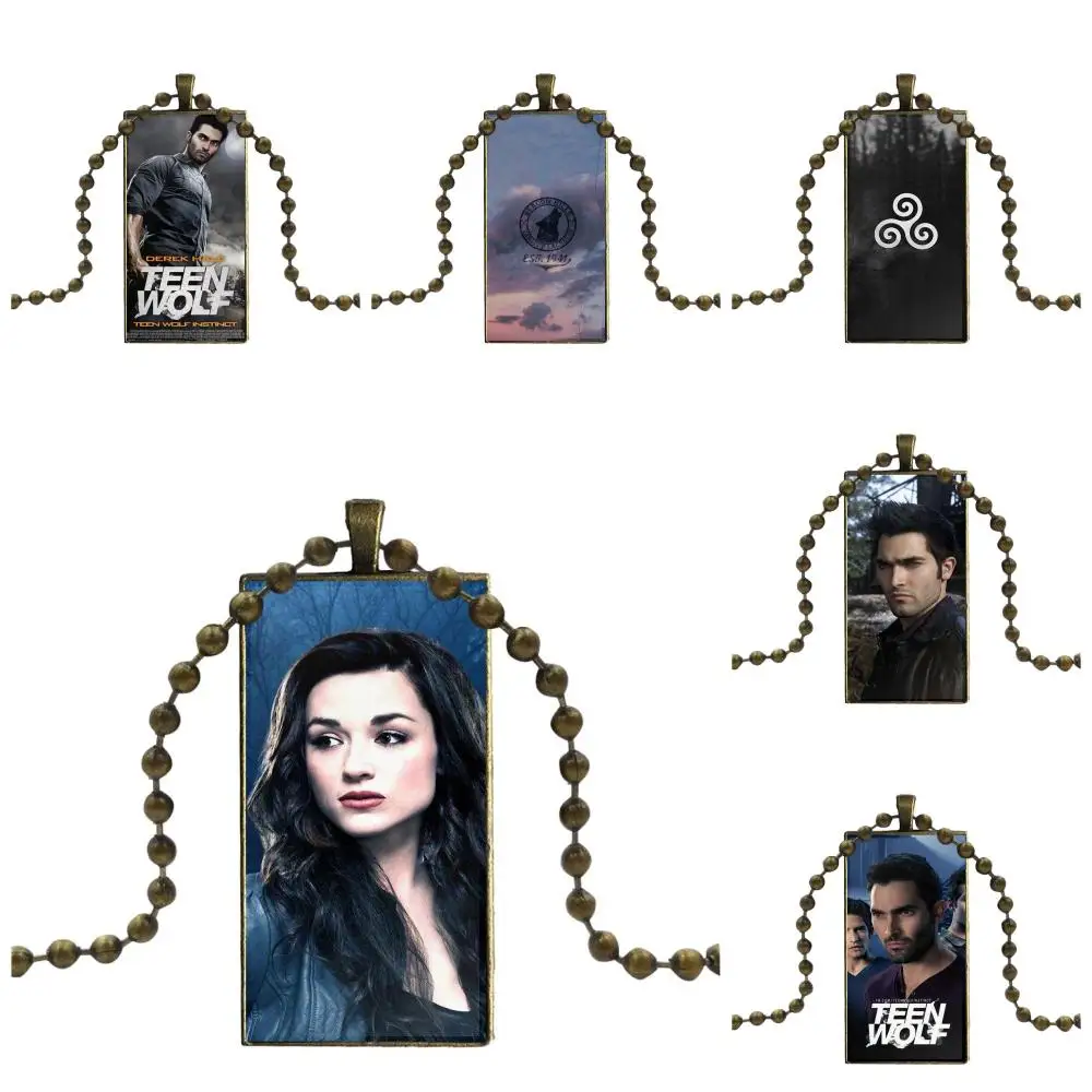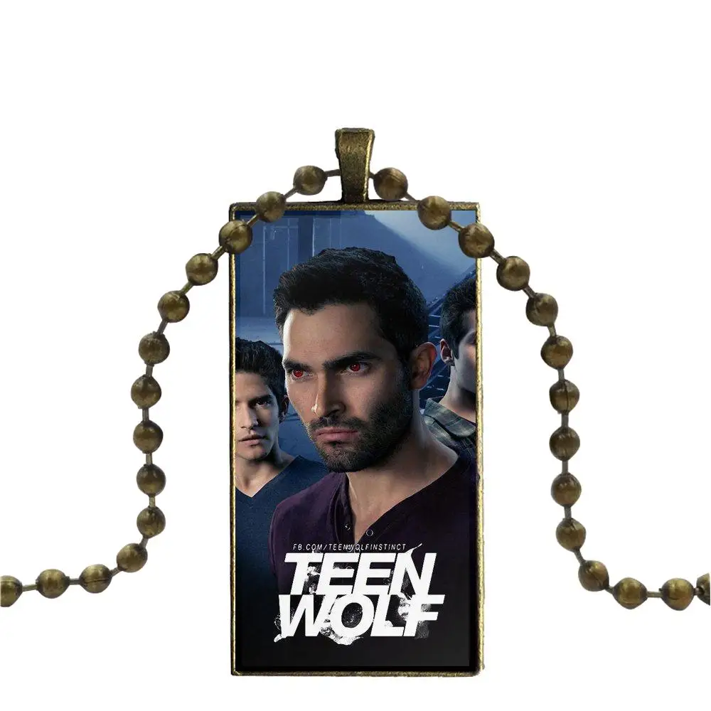 Ожерелье с бронзовым покрытием, стеклянное колье с кабошоном, Длинная подвеска, прямоугольное ожерелье для ребенка, горячая Распродажа, ужасные сериалы, Подростковый волк