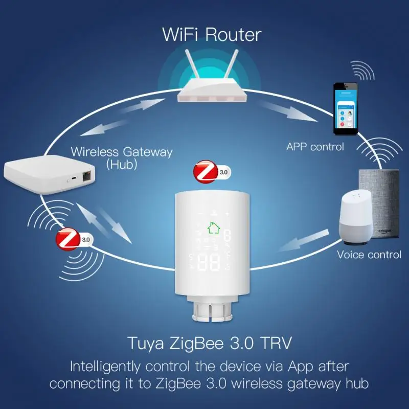 4. Голосовое и дистанционное управление для беспроводного шлюза Tuya ZigBee: поддерживает приложение дистанционного управления через ваш смартфон, вместе с голосовым управлением без рук через Alexa и Google Assistant после успешного подключения вашего клапана к приложение Tuya /Smart Life на основе одного беспроводного шлюза Tuya ZigBee.