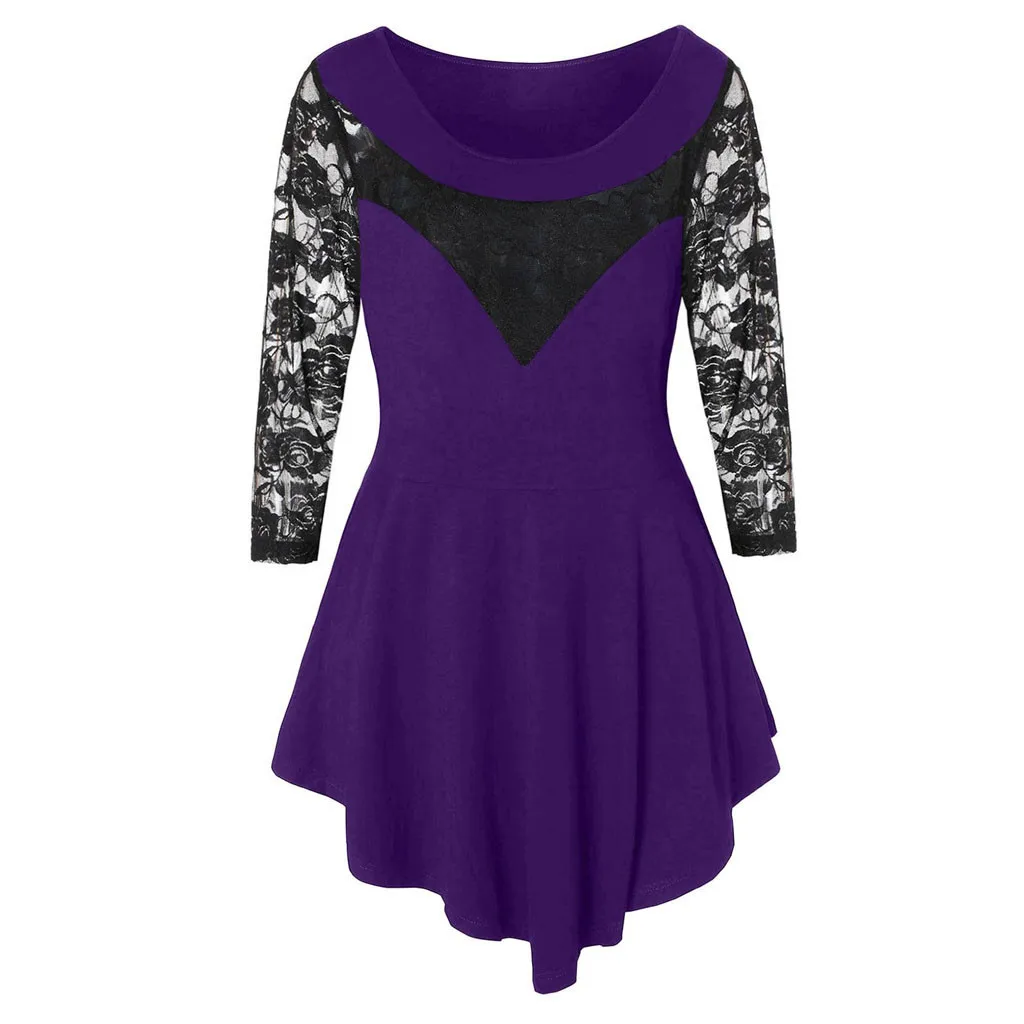 1. Особенности: однотонное, цветочное кружево, круглый вырез, асимметричный, три четверти, топы, блузка, стильный и модный дизайн, простой топ, модная блузка