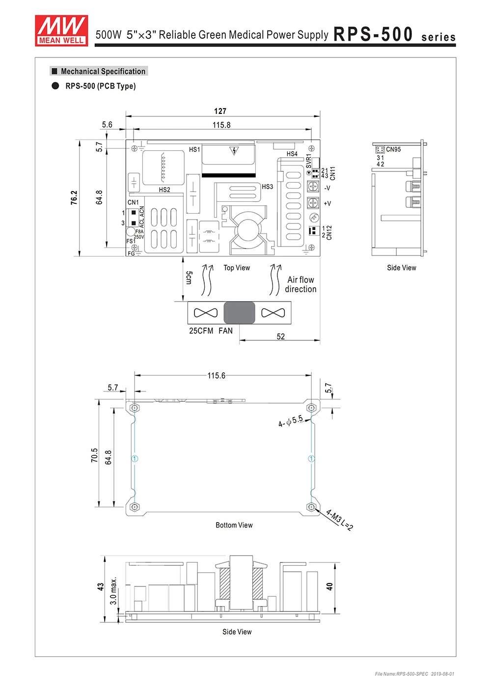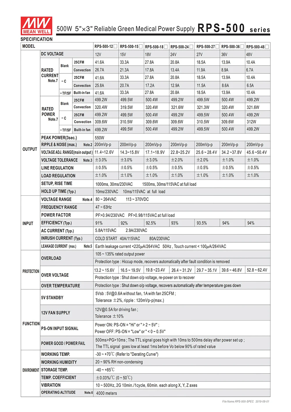 С оптимизмом по поводу быстрого развития медицинской промышленности и увеличения спроса на стандартные источники питания, MEAN WELL выпускает новые серии 500W high power density RPS-500, чтобы удовлетворить требования к решениям с открытой рамкой для медицинской электроники. В дополнение к уже вышла 30/45/60/65/75/120/160/200/300/400W товар в течение заданного RPS линейка продукции, RPS-500 расширяется означает, что 5 ”x3” медицинский продукт предлагает до 500 Вт. Серия RPS-500 поставляется с вариантами нескольких форм-факторов, включая голые Печатные платы (RPS-500), безвентиляторные покрытые (RPS-500-C), а также Крепление Шасси со встроенными вентиляторами (Верхний вентилятор: RPS-500-TF; боковой вентилятор: RPS-500-SF). С различными дополнительными предложениями, означает, что хорошо может обеспечить новые стандартные решения питания для многих различных медицинских применений. Все RPS-500 варианты сертифицированы в соответствии с последними медицинскими гарантиями, такими как IEC60601-1, ANSI/AAMI ES60601-1 и TUV EN60601-1. С 2xmopp уровень изоляции и ультра-низкой утечкой тока (<190uA), RPS-500 подходит для Тип BF для использования в медицине. RPS-500 способен выполнять чрезвычайно хорошо в различных видах лечения, диагностики, лаборатории, мониторинга и применения медицинской робототехники.