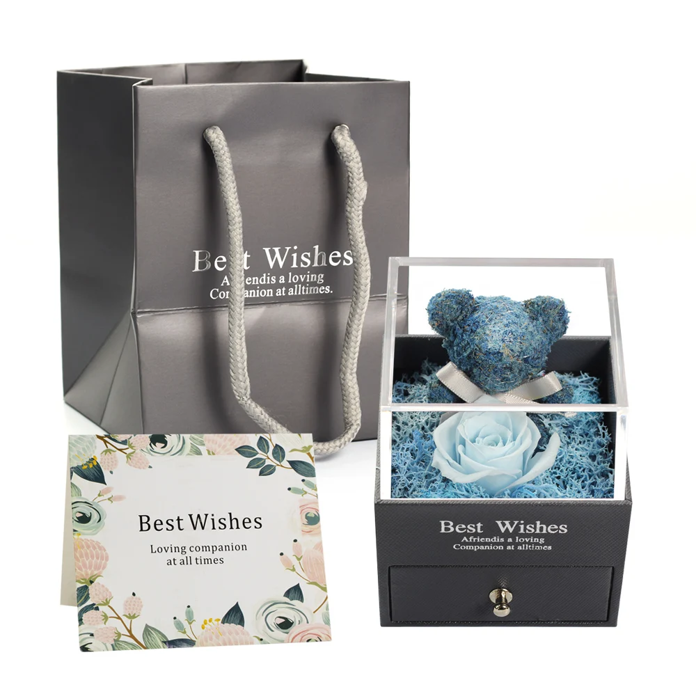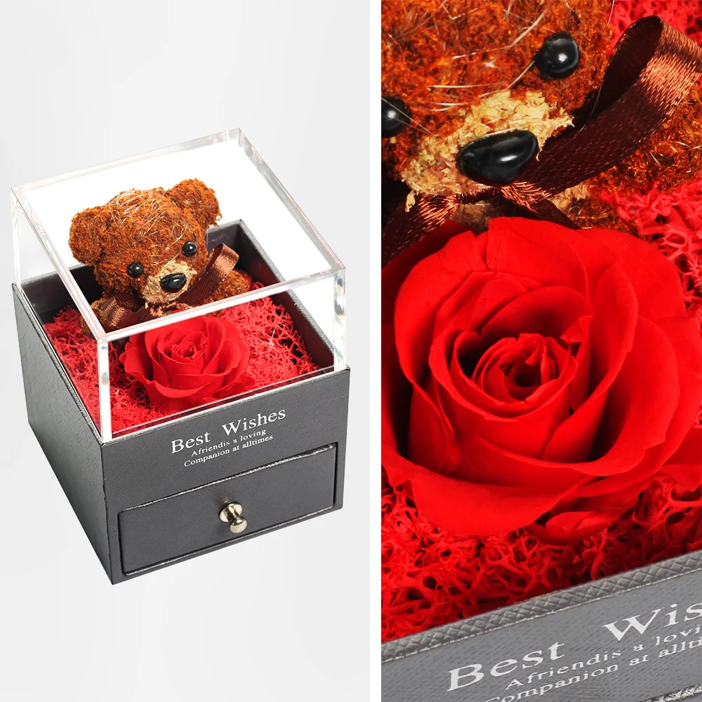 Женский подарок Мишка Тедди цветок вечная роза красота и чудовище сухоцветы в коробке Свадебный декор подарки на день Святого Валентина