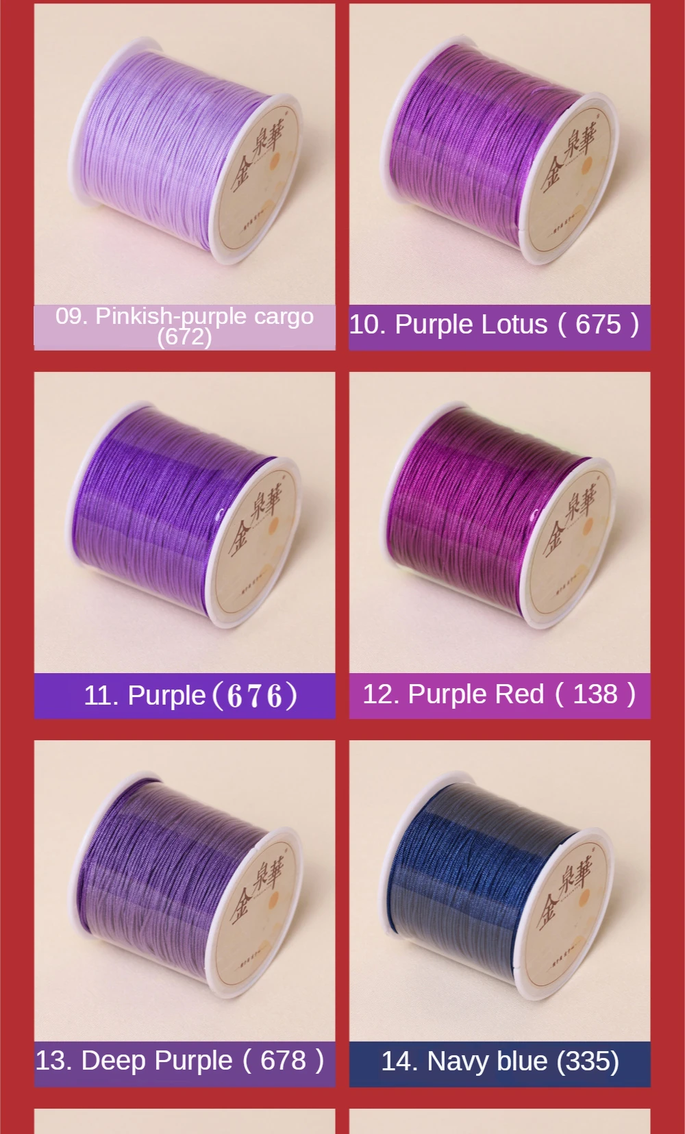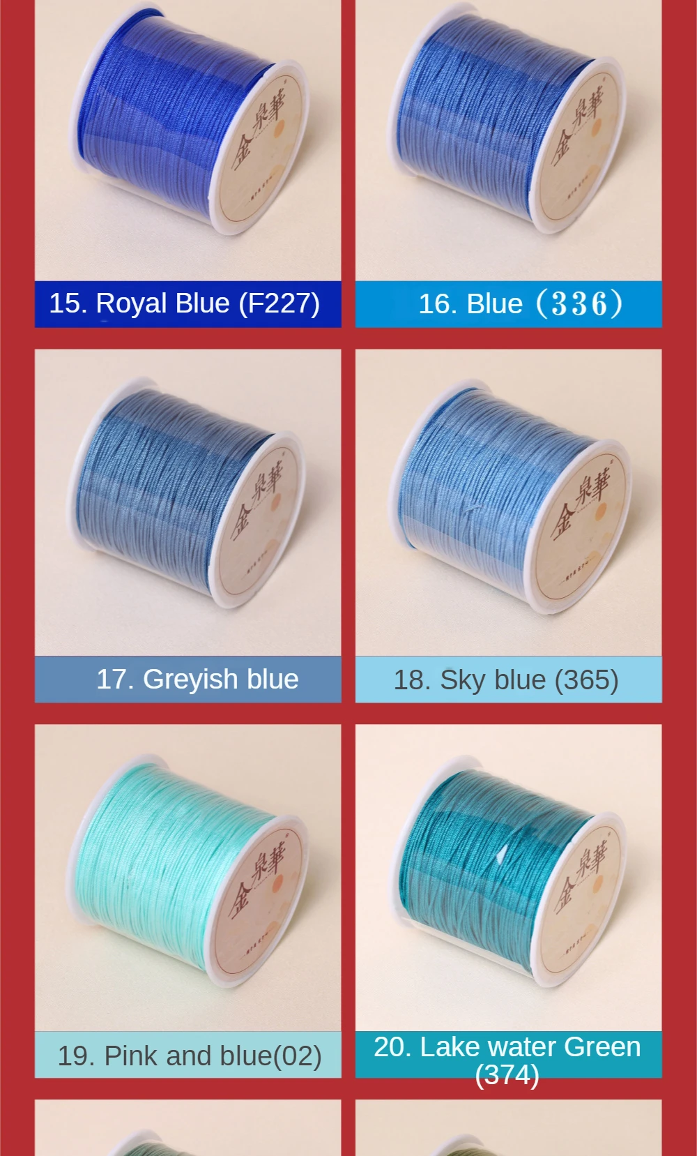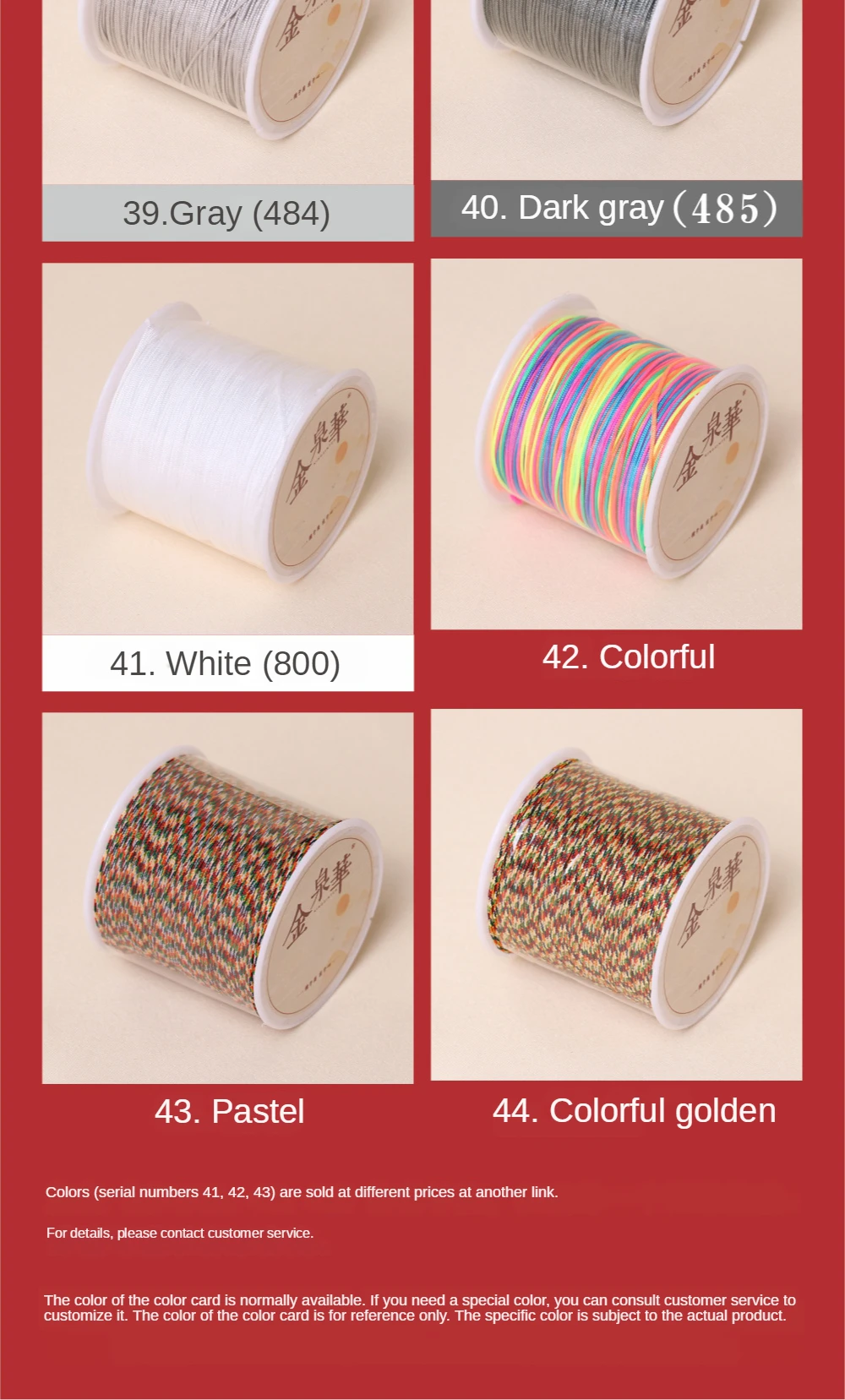 Brand NameNoneModel Number44MaterialNylonItem TypeJewelry FindingsItem Weight30Product FeaturesMixed colorJewelry Findings TypeCordsMeasurement unit100000015Each pack1