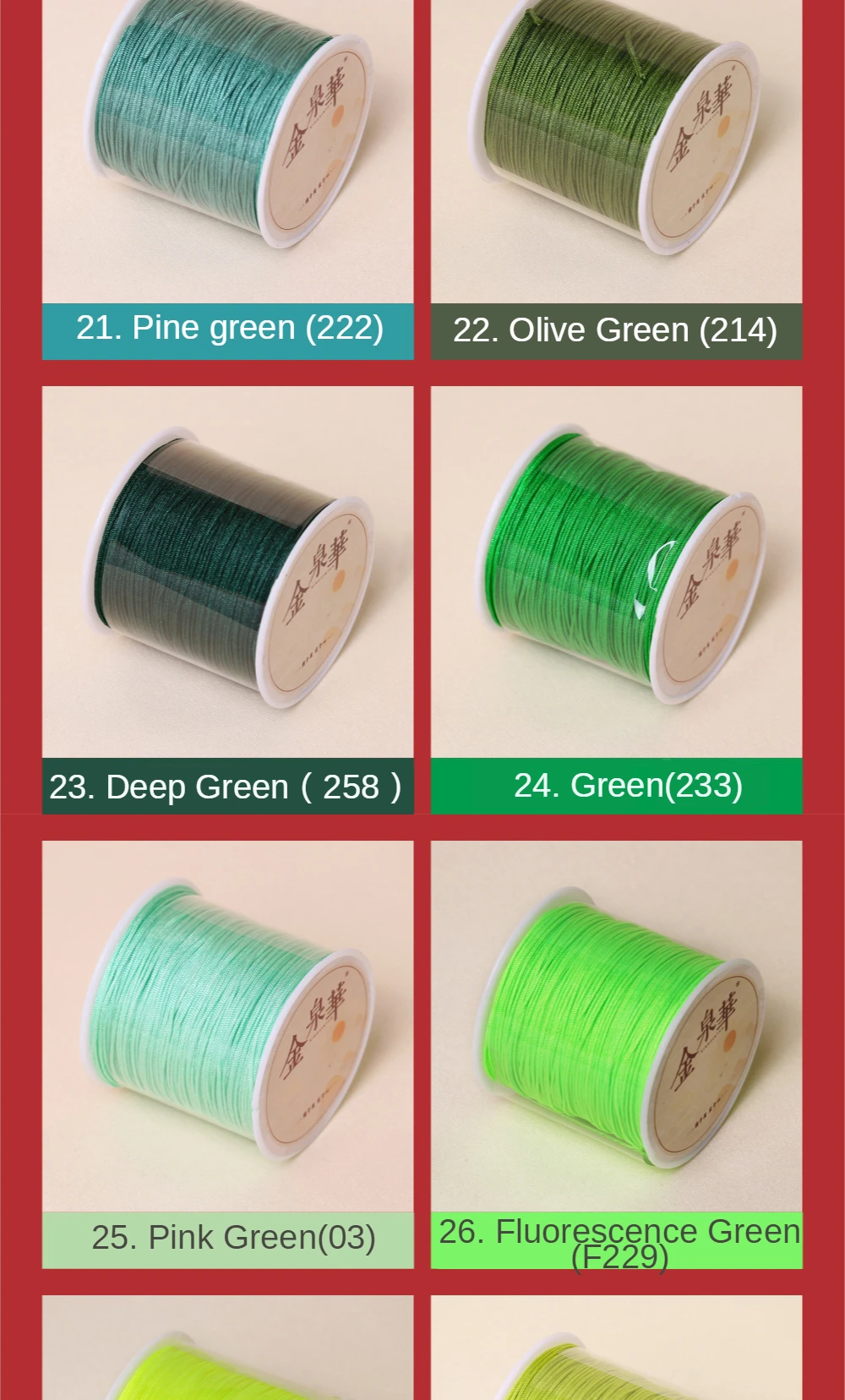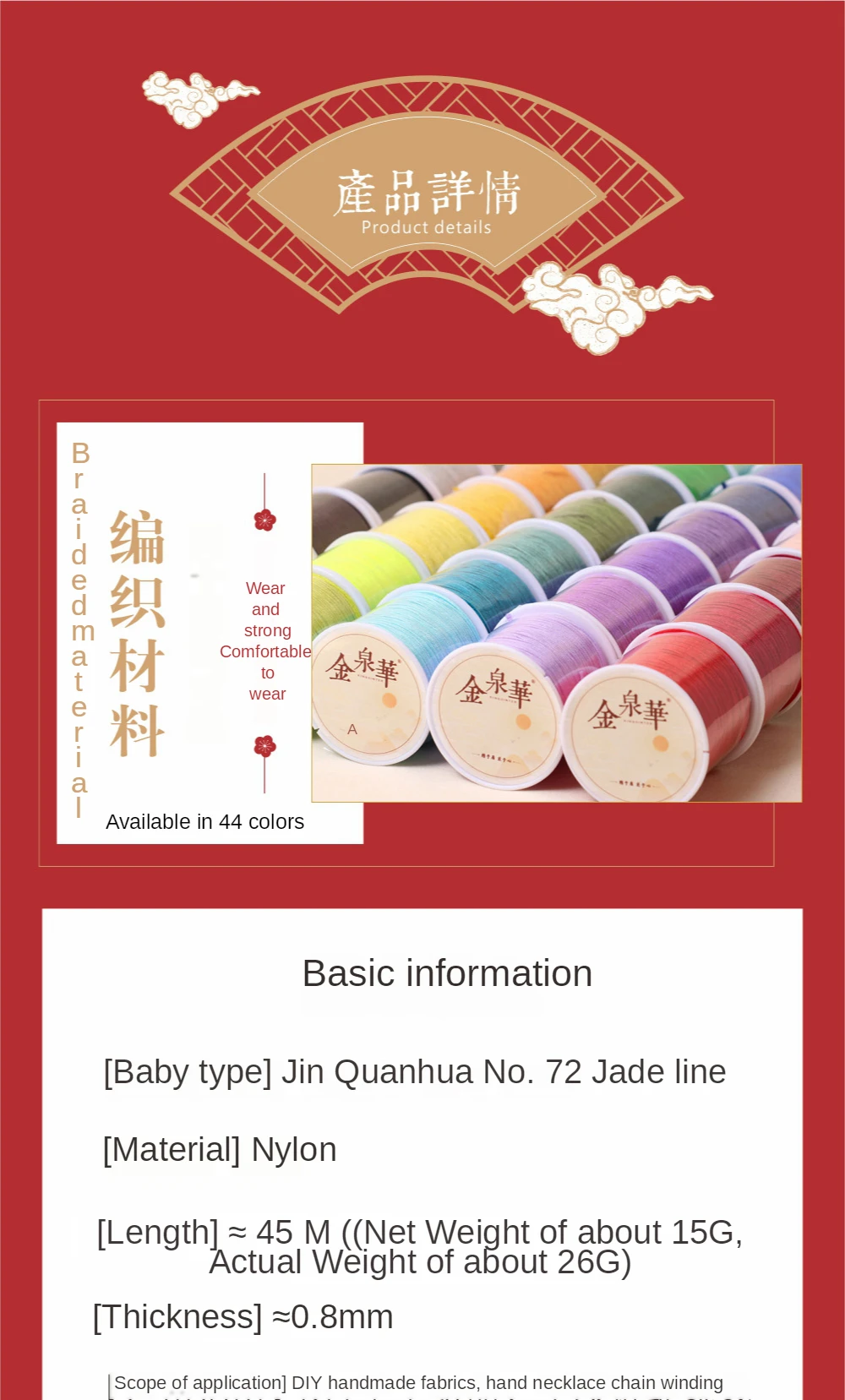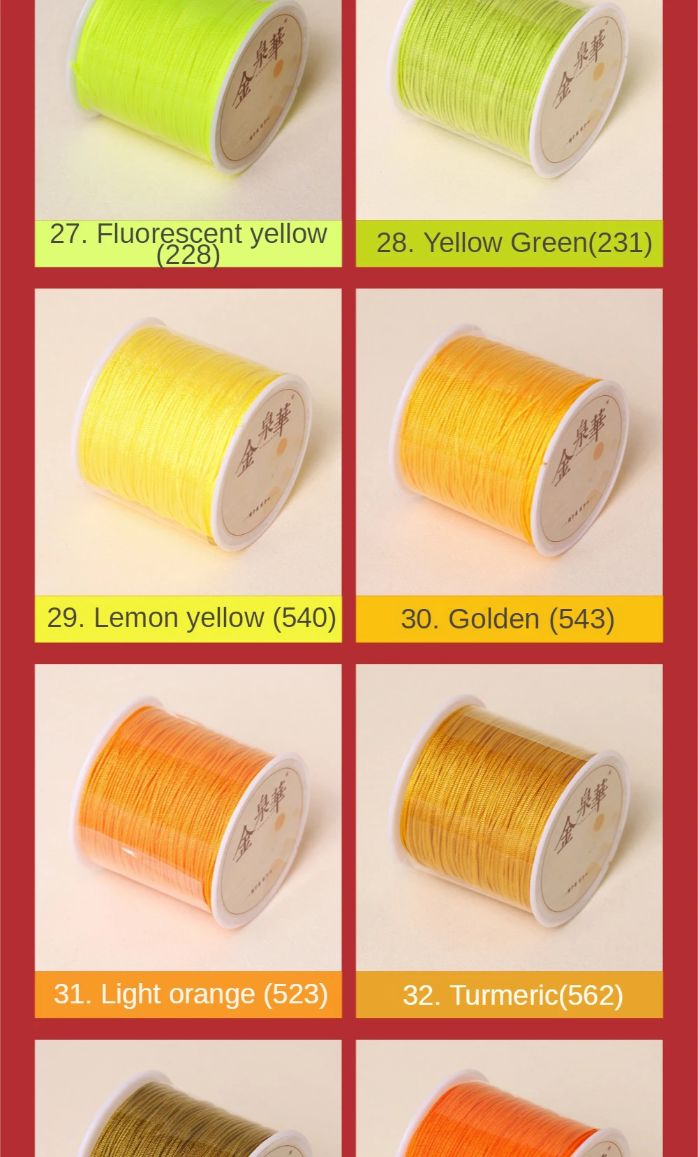 Brand NameNoneModel Number44MaterialNylonItem TypeJewelry FindingsItem Weight30Product FeaturesMixed colorJewelry Findings TypeCordsMeasurement unit100000015Each pack1