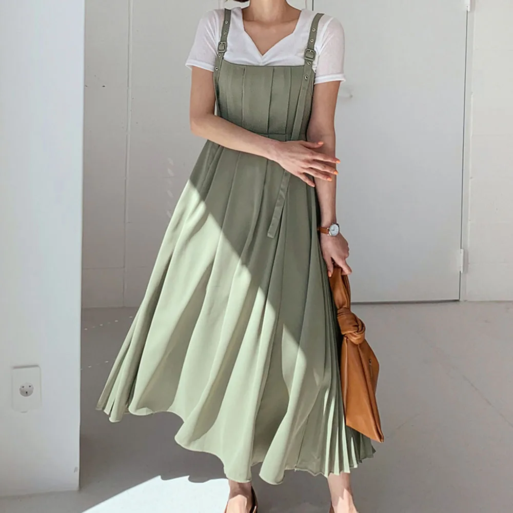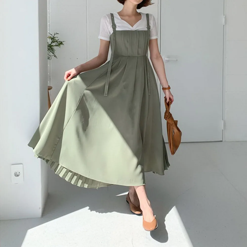 Sisjuly Zomer Herfst 2020 Mouwloze Band Jurk Vlakte Japan Stijl Vrouwen Kantoor Jurk gepluoide Swing Vakantie Jurk Minimalistische