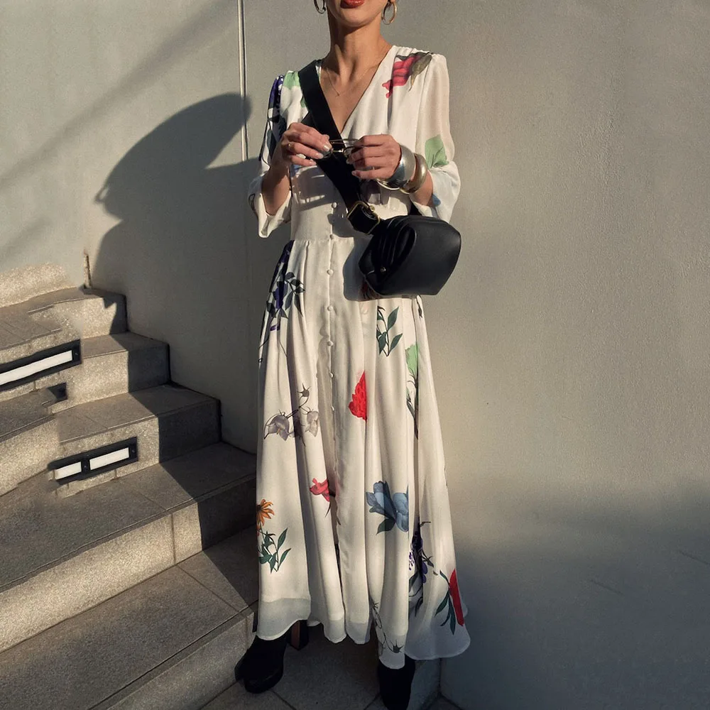 Японское Модное Длинное Платье трапециевидной формы, модель 2020 года, летнее корейское Платье макси с цветочным принтом и длинными рукавами, женское платье, Vestiods, праздничное платье