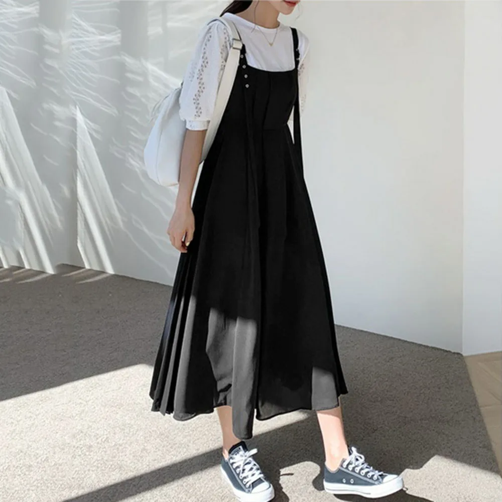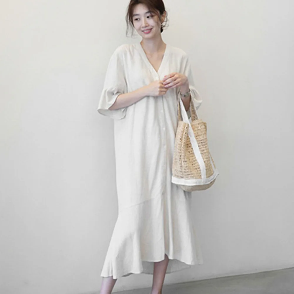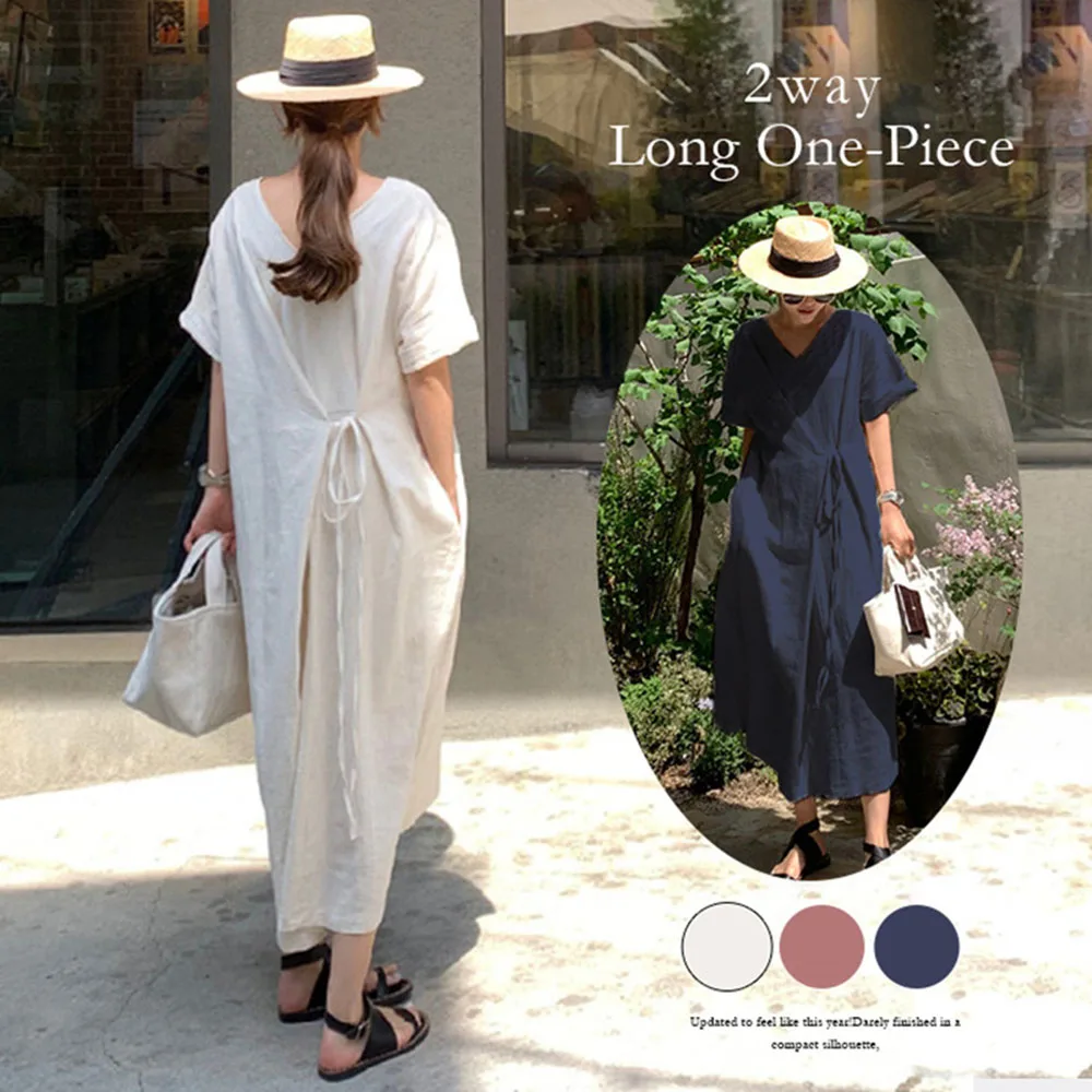 Корейское японское летнее цельнокроеное длинное платье 2020 женская одежда однотонное женское повседневное свободное офисное платье Макси