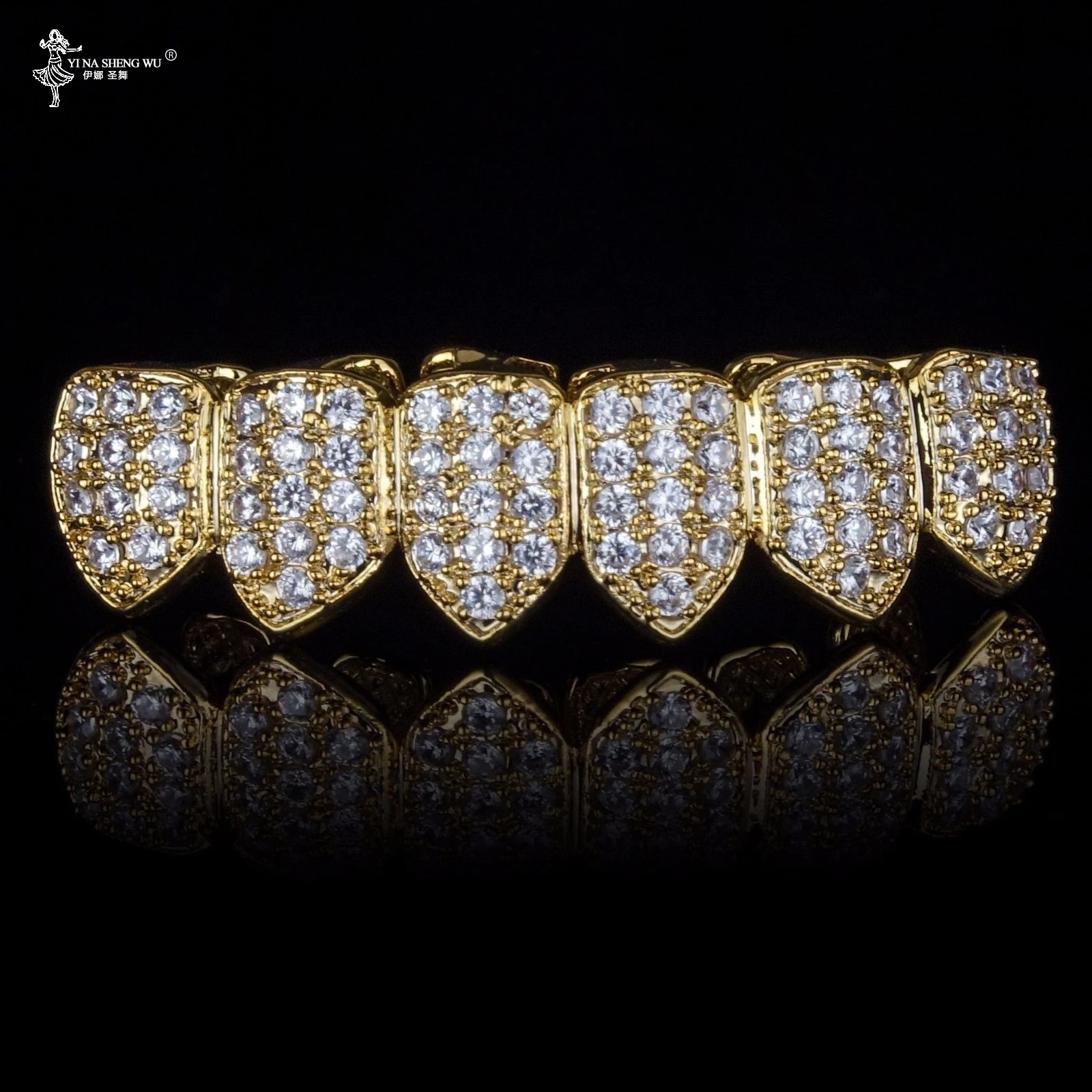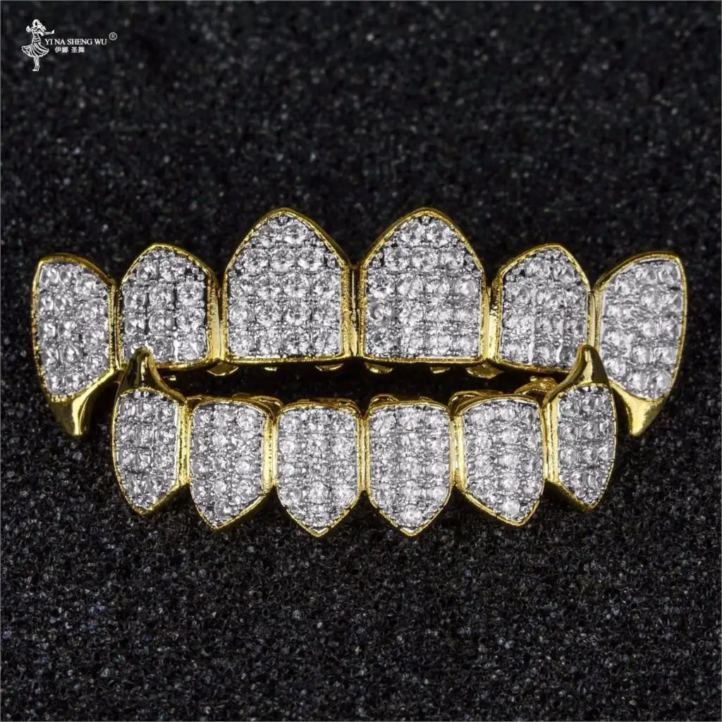 Чистый золотой и посеребренный хип-хоп гриль микро-паве CZ золотой Клык Верхняя и нижняя гриль для зубов вампирский набор для мужчин