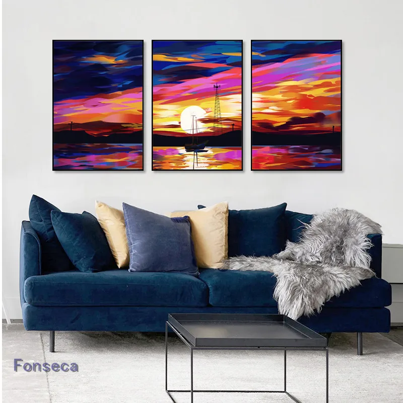 Canvas Art Blue Sea Bridge Reed Beach Sailboat Quote Landscape Painting Nordic Wall Pictures For Living Room Decor Gift | Дом и сад