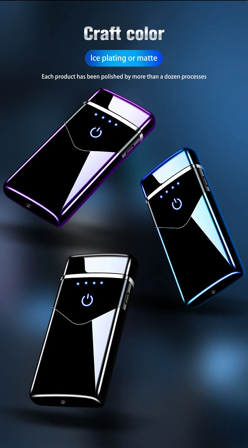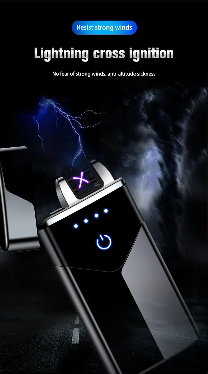 Модная плазменная Электронная зажигалка с двойной дугой, умная сенсорная USB Зажигалка, перезаряжаемая светодиодная батарея, дисплей, ветрозащитная для мужчин, подарки, 2020
