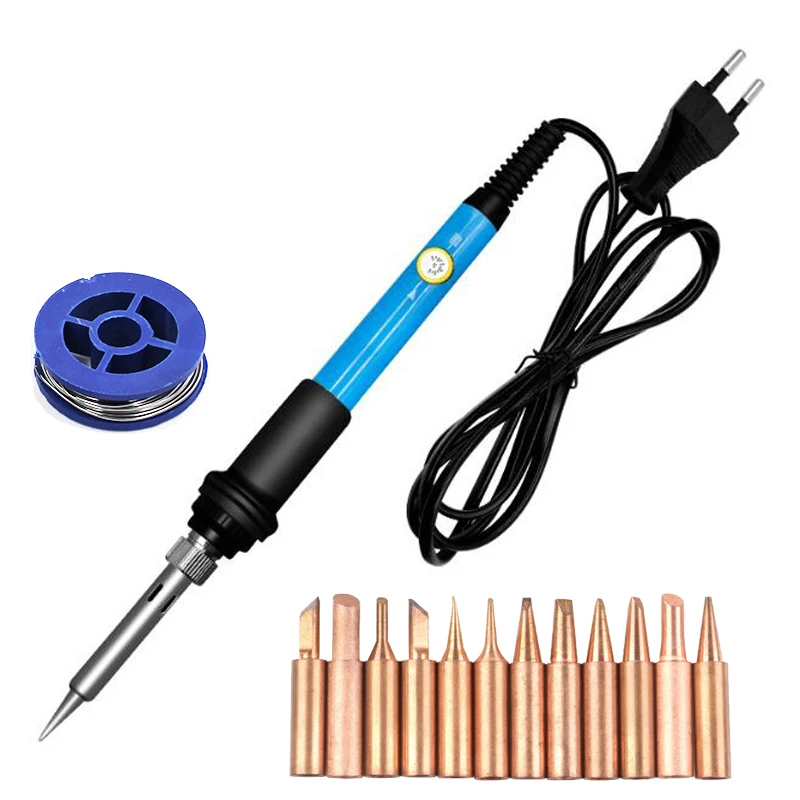 1 комплект синий 60 Вт Портативный Регулируемый температурный Электрический паяльник тепловой карандаш с 12 шт. медными наконечниками для припоя