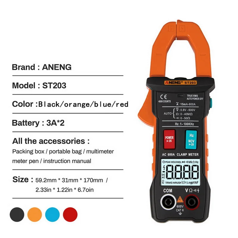 <Поддержка функции NCV: Бесконтактная функция обнаружения напряжения с датчиком для обнаружения напряжения и избегания электрического удара, не касаясь проводов.