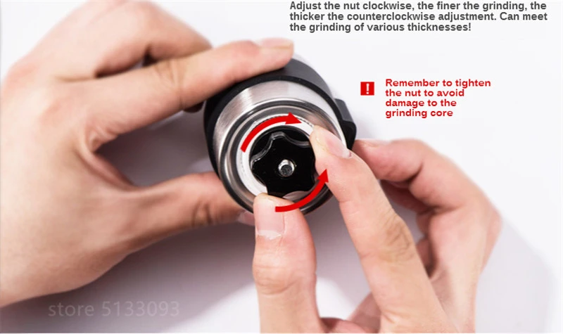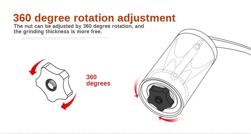 Отрегулируйте гайку по часовой стрелке, чем тонче шлифовка, тем толще Регулировка против часовой стрелки. Может удовлетворить измельчение различной толщины!