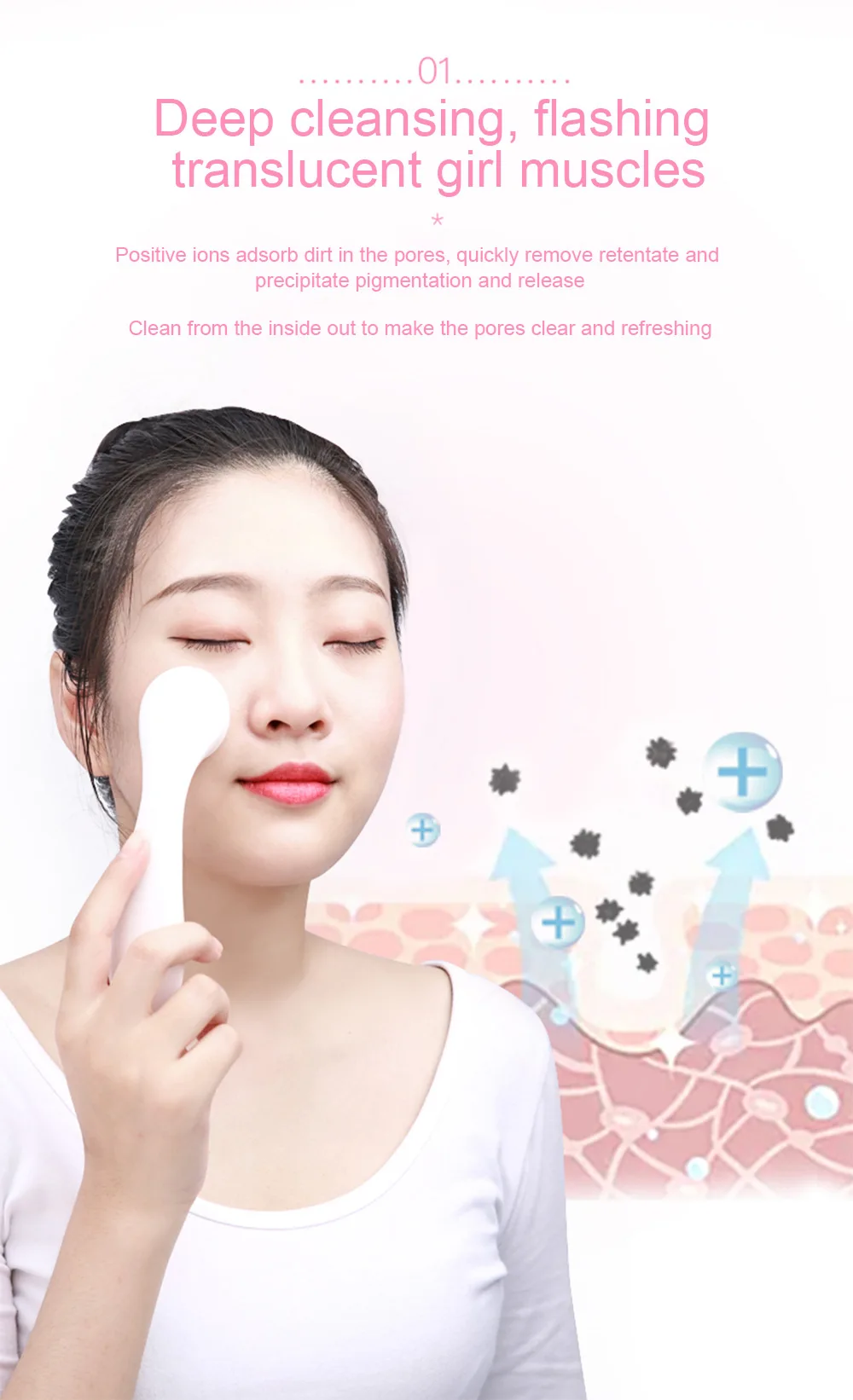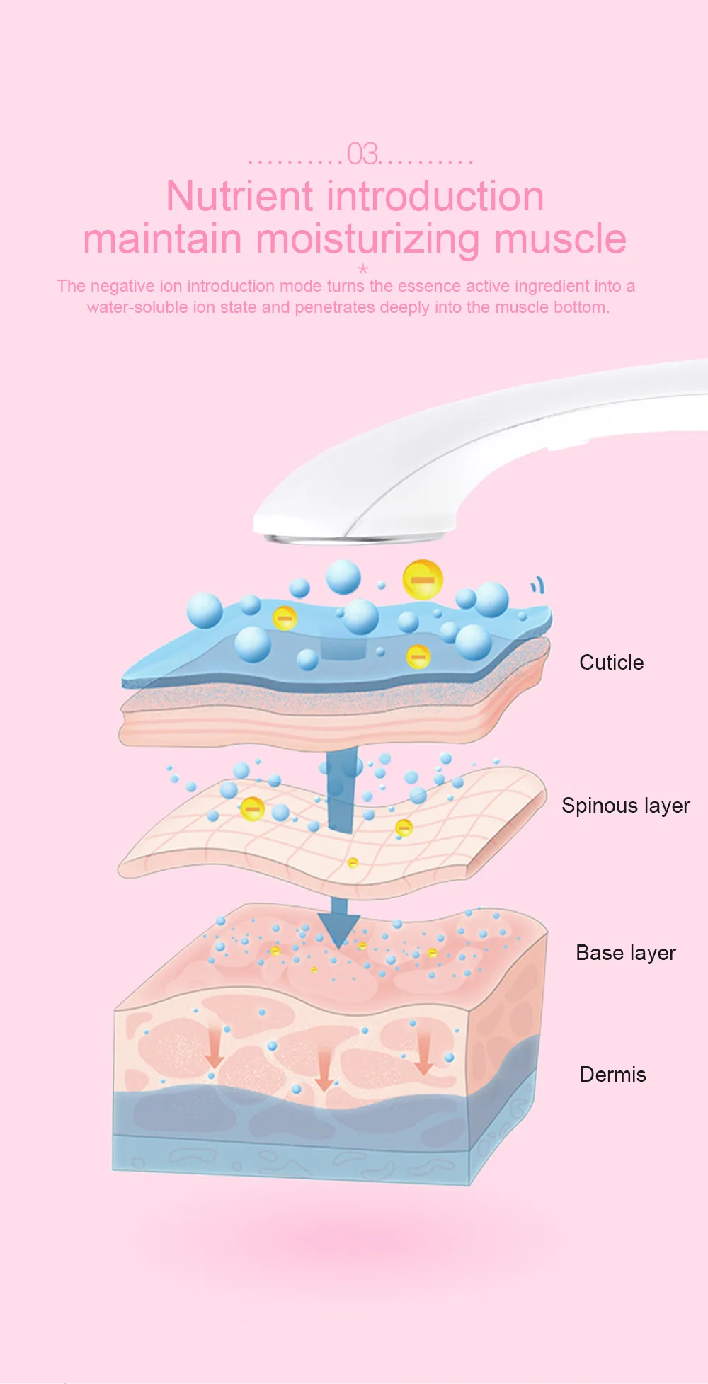 1. Укрепляющий, очищающий, увлажняющий, отбеливающий, увлажняющий, против морщин, восстанавливающий, антивозрастной, отшелушивающий, освежающий, омолаживающий, детоксикационный, отек, осветляет меланин, улучшает текстуру кожи и уменьшает поры 2. Положительные ионы адсорбируют грязь в порах, быстро удаляют ретентатную и осаждающую пигментацию и выделяют 3. Очистите с изнанки, чтобы сделать поры прозрачными и освежающими 4. Режим ввода отрицательных ионов превращает эссенцию активного ингредиента в водорастворимое ионное состояние и глубоко проникает в мышечное дно 5. Электронные ионы стимулируют внутреннюю циркуляцию тела, пробуждают коллаген в клетках, и активируют живое питание клеток изнутри и outsid