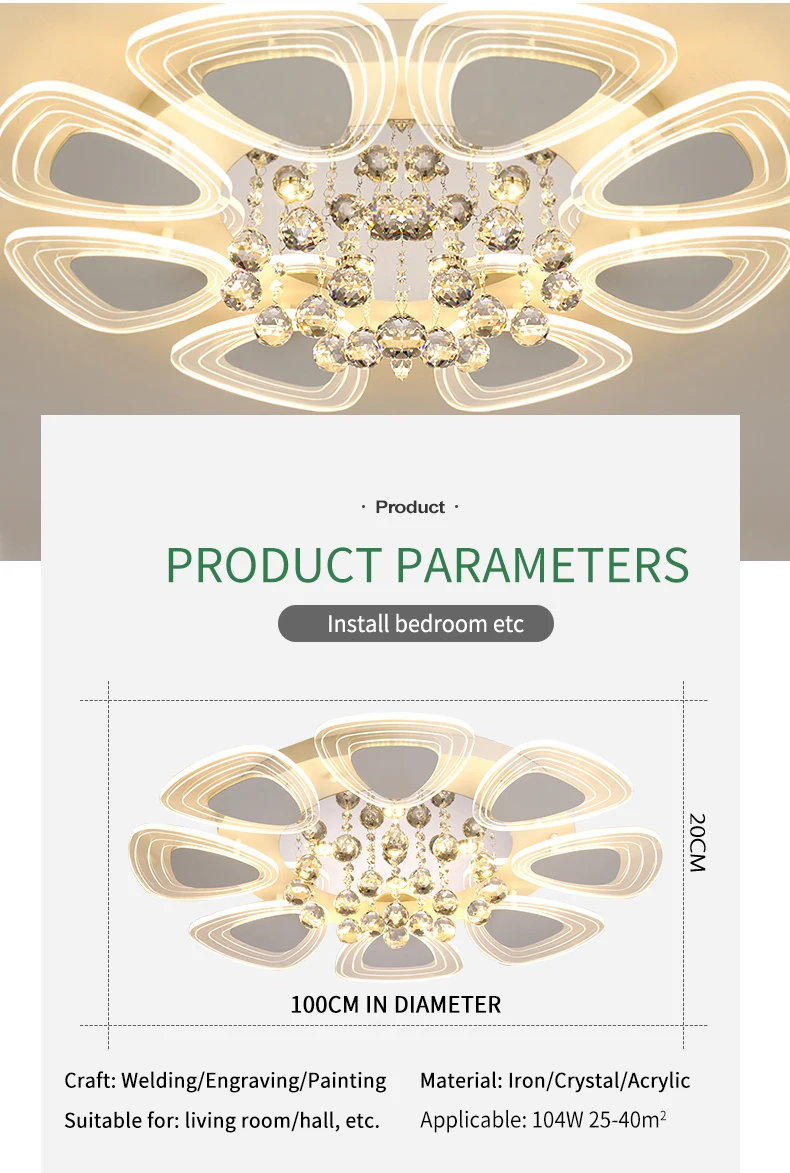 Lightsource:LED Color Temperature: warm white/cool white/Brightness dimmable 1. Cool White: No remote. 2. Warm White: No remote. 3. Brightness Dimmale: It have Cool white,natural white, Warm White,It can adjust the brightness and color,adjustment is brighter-darker and the ability to switch from cold light to Warm, have remote(not contain battery) Light Source Life Span: 50000 hrs Voltage:AC85-240V (Please note the voltage when ordering or contact us!) Material: Hardware + Acrylic Size: 5 heads D60cm 6 heads D65cm 8 heads D80cm 10 heads D100cm Color:As shown Application: Living room,Bedroom,Dining room,Kitchen,Study room Any Problems, Please contact customer services,We will reply you in the first time. Notes: 1. Manual measuring, please allow 1 ~ 3mm error,thank you for your understanding. 2. Due to the difference between different monitors, the picture may not reflect the actual color of the item. We guarantee the type is the same.