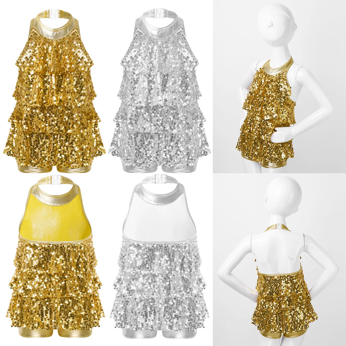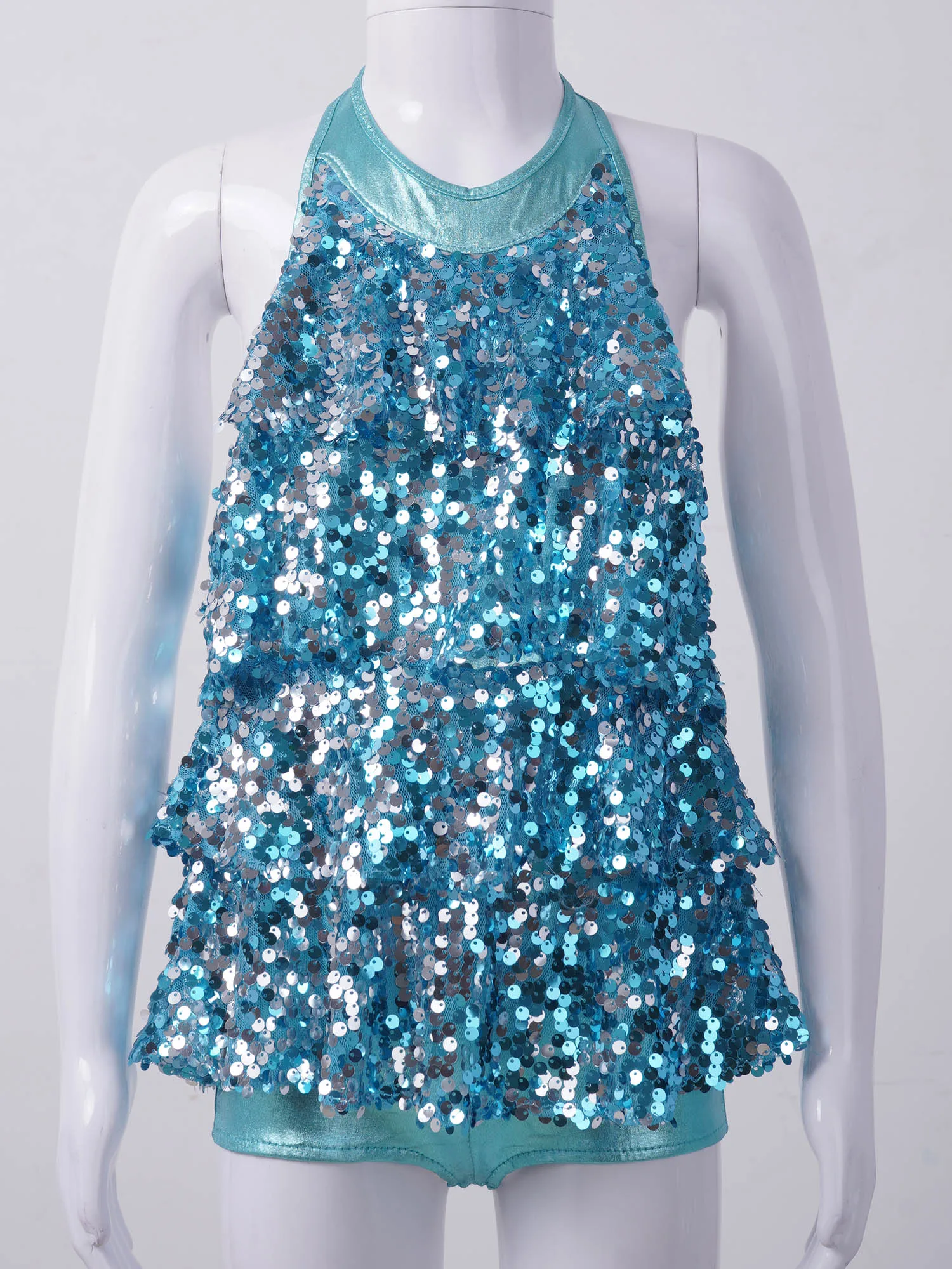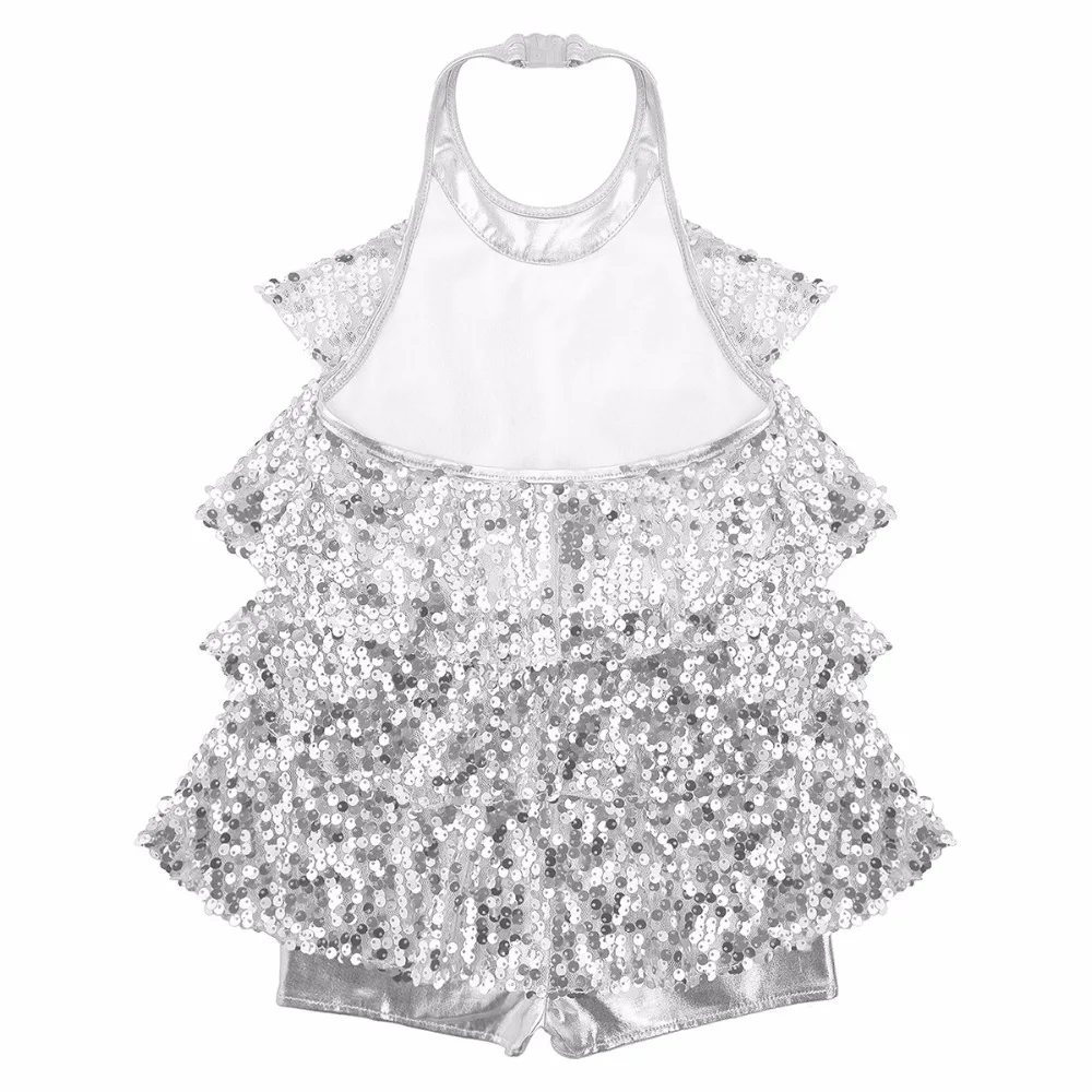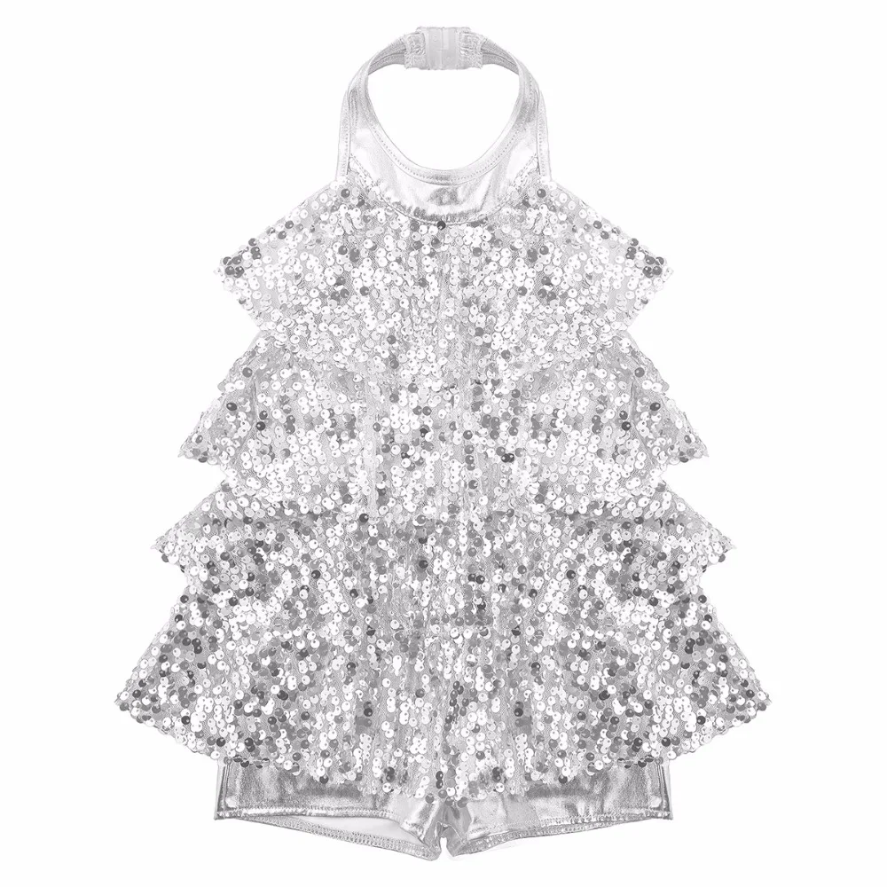 Балетное гимнастическое платье для девочек от 6 до 14 лет блестящее платье без рукавов с блестками для катания на роликах и джазовых танцев, трико, костюм для сцены