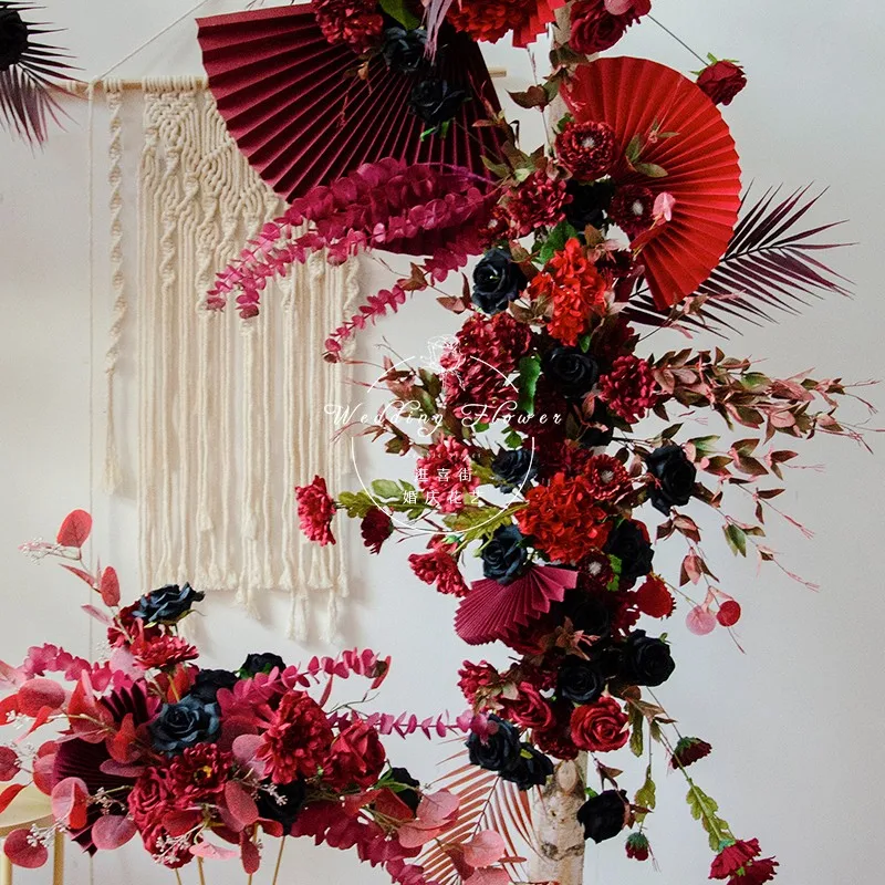 Роскошные бордовые винно-красные свадебные арки Декор Цветочная композиция событие бумажный веер листья ряд цветов центральный стенд вечерние сцены